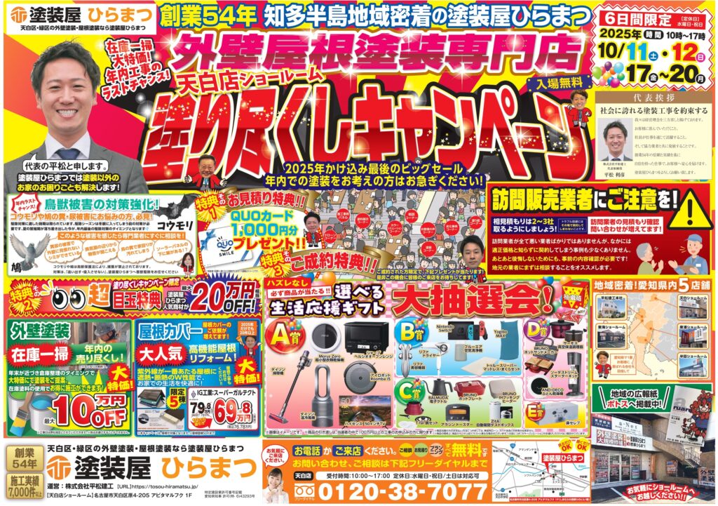【天白店】塗り尽くしキャンペーン★|外壁塗装・屋根塗装は塗装屋ひらまつ
