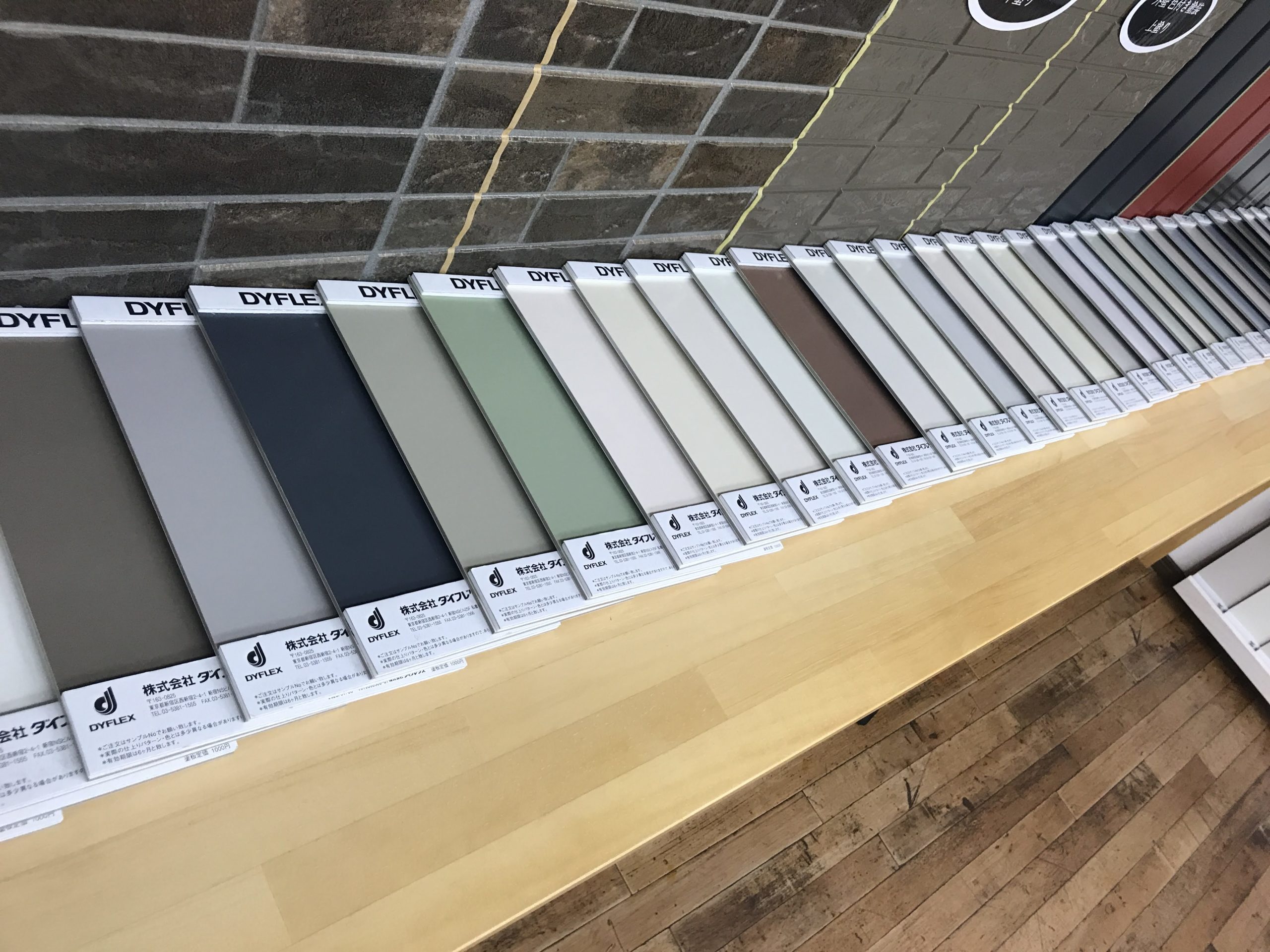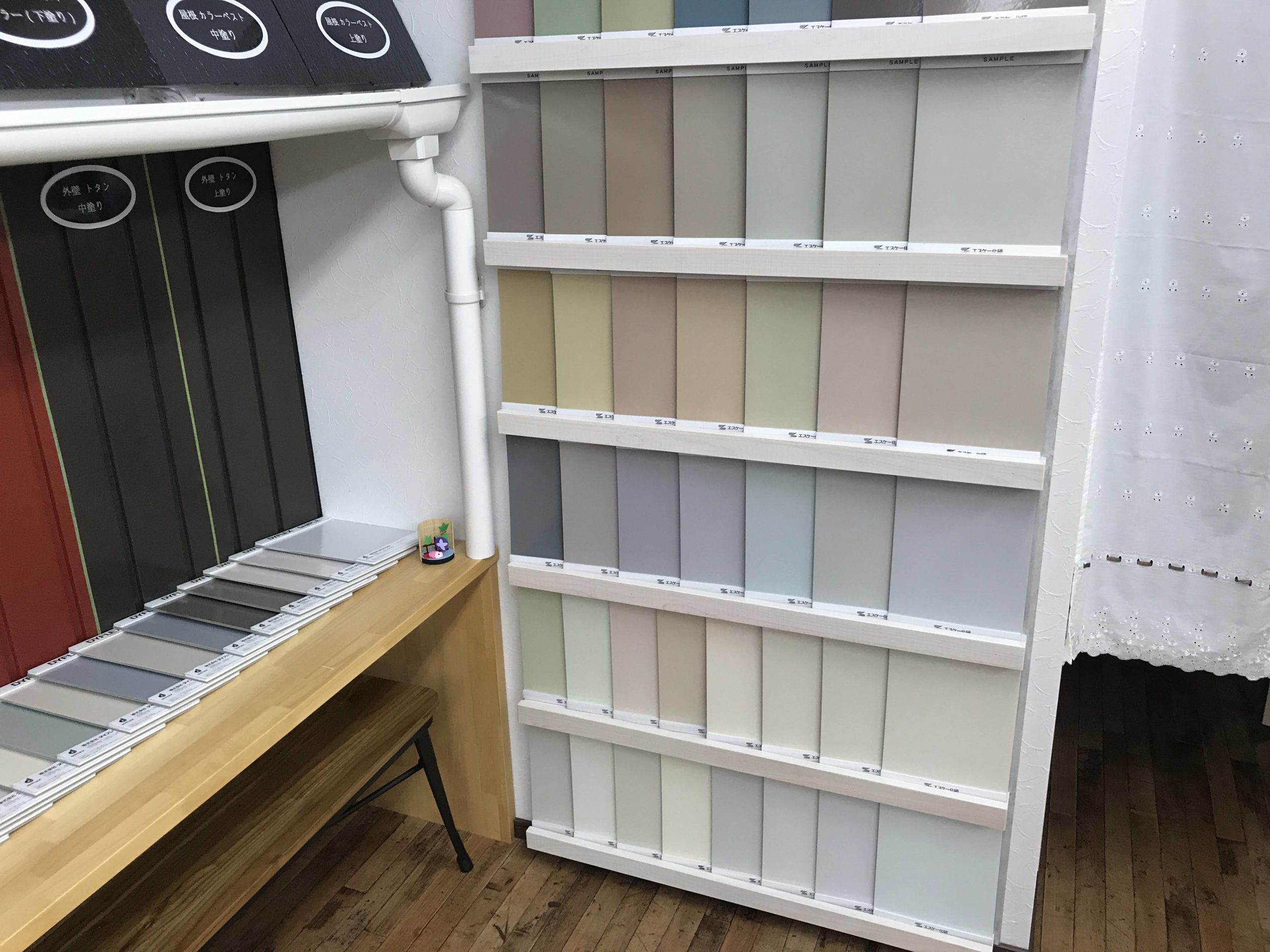 外壁塗装コーナーでは様々な種類のサンプルやカタログを用意しています。