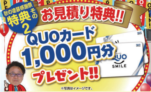 お見積もりを頂いたお客様には「QUOカード1,000円」プレゼント!!