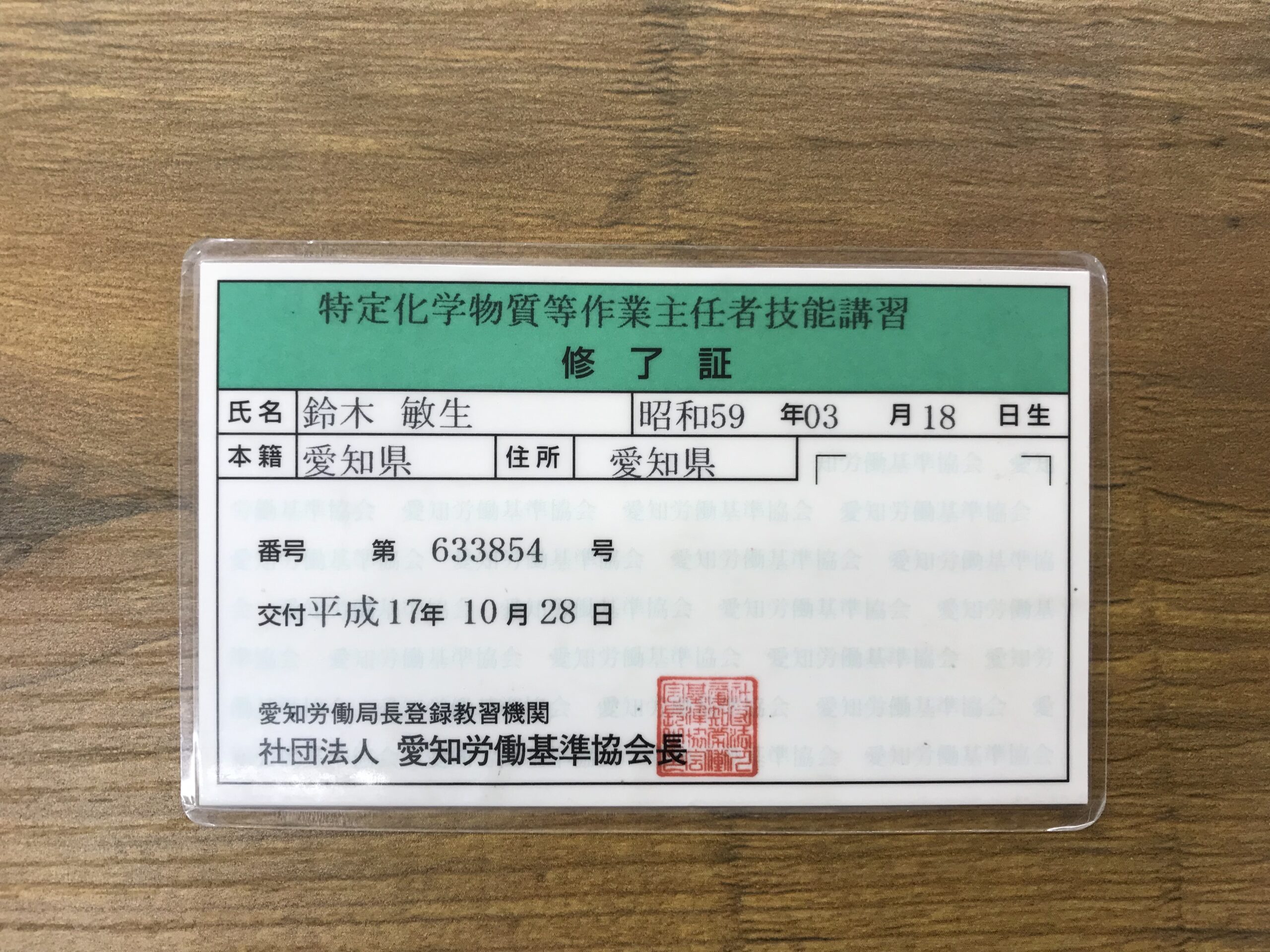 ガンなどを発症させるおそれのある特定化学物質から労働者を守るのが仕事で、厚生労働省が認定する国家資格です。