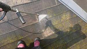 古い塗膜、コケや汚れを落とすために外壁屋根塗装をする際には事前に高圧洗浄が必要となります。