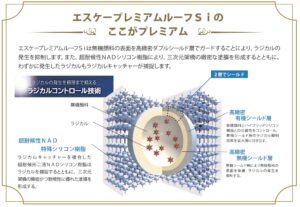 『エスケープレミアムルーフSi』は無機酸化物の表面を高緻蜜ダブルシールド層でガード
