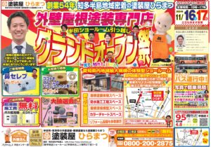 半田店:半田ショールーム引っ越しグランドオープン祭★最新チラシ情報|半田市・東海市・知多半島の外壁塗装・屋根塗装は塗装屋ひらまつ