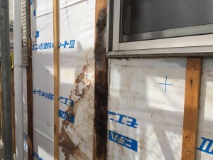 これは外壁材(サイディング)を剥がした状態の写真です。