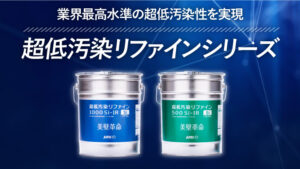 - リファインシリーズ:「超低汚染性」「高耐候性」「遮熱(保持)性」に加え、外壁材や目地上の塗膜のひび割れを抑制できる「弾性(目地追従性)」を持つ、機能性に優れた塗料です。