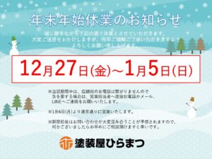 年末年始休暇について|半田市・東海市・知多半島の外壁塗装・屋根塗装は塗装屋ひらまつ