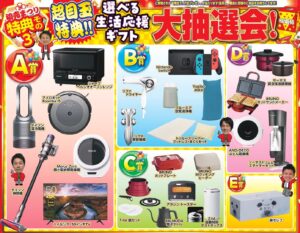 A賞~E賞まで生活応援ギフト盛りだくさん!!
