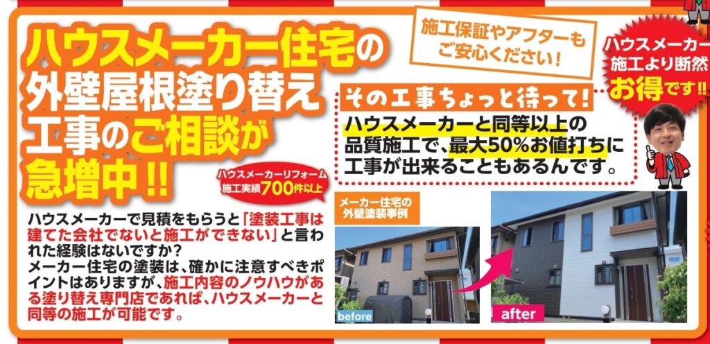 ハウスメーカーと同じ品質施工で最大50%もお値打ちになる事があります。