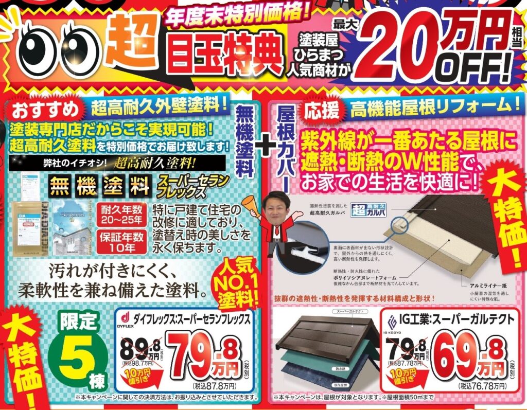年度末特別価格!!塗装屋ひらまつ人気商材が最大20万円OFF!!