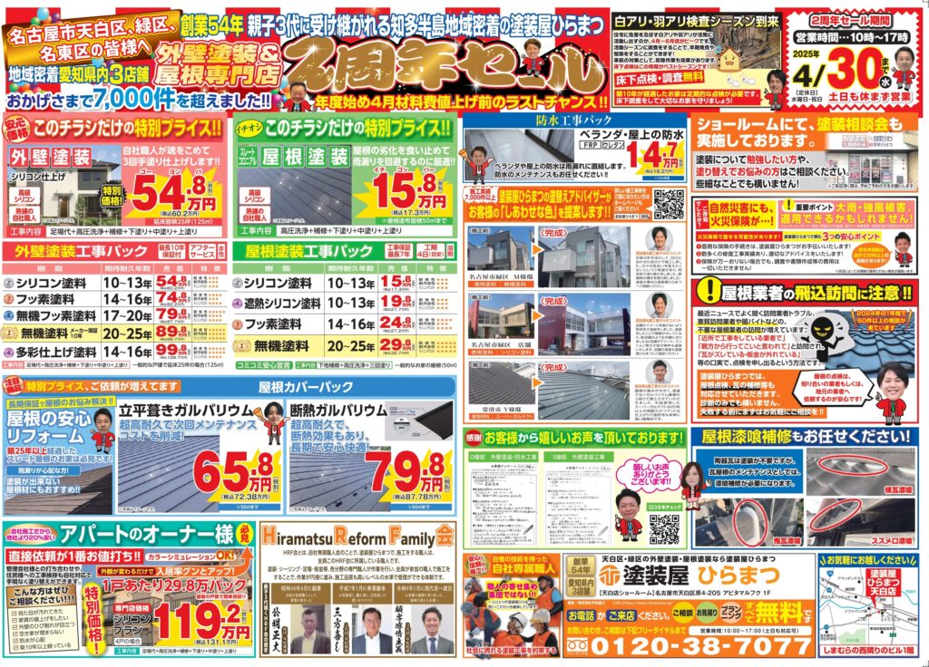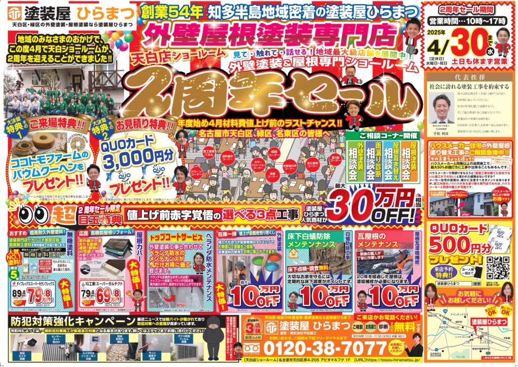 【天白店】:2周年セール★|外壁塗装・屋根塗装は塗装屋ひらまつ