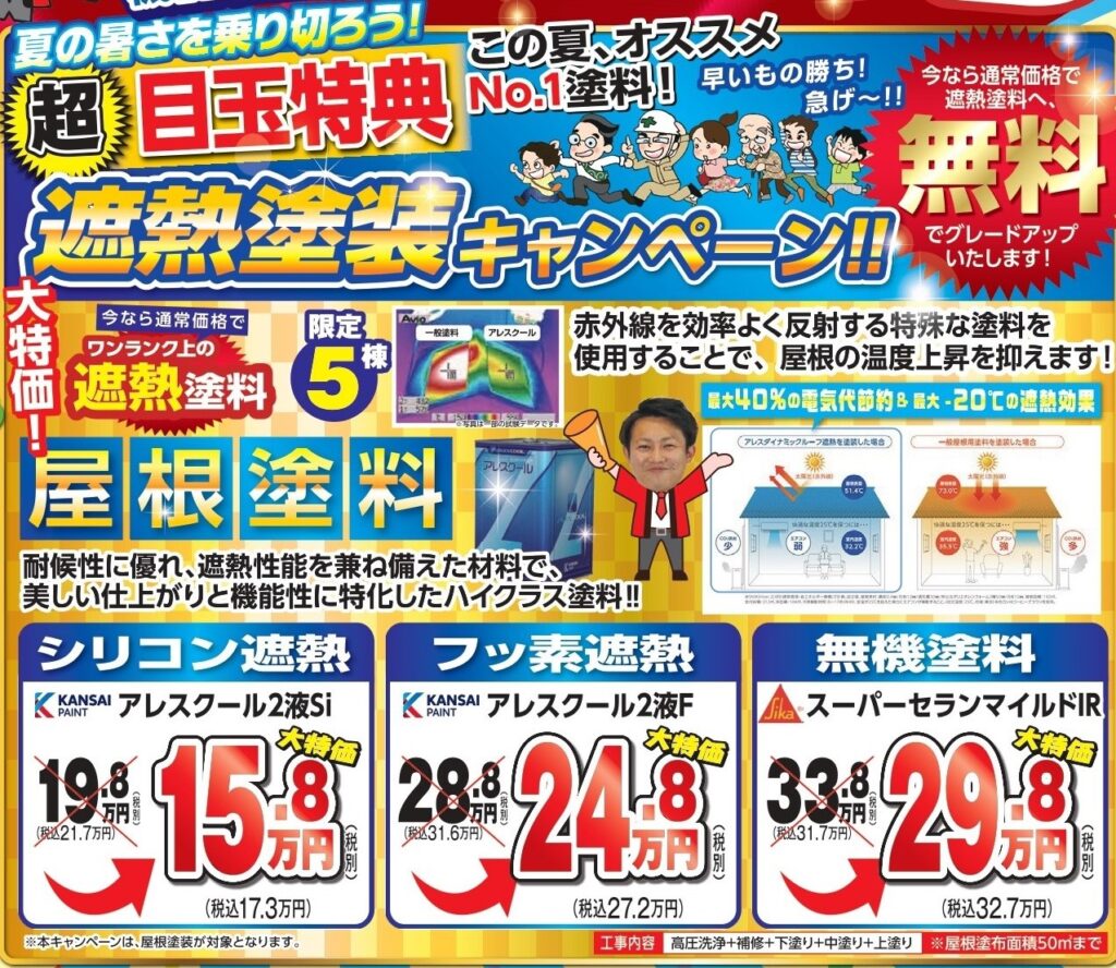 🎁今なら通常価格で遮熱塗料へ、無料グレードアップいたします!