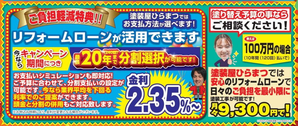 安心のリフォームローンで日々のご負担を最小限に塗装工事が可能です!