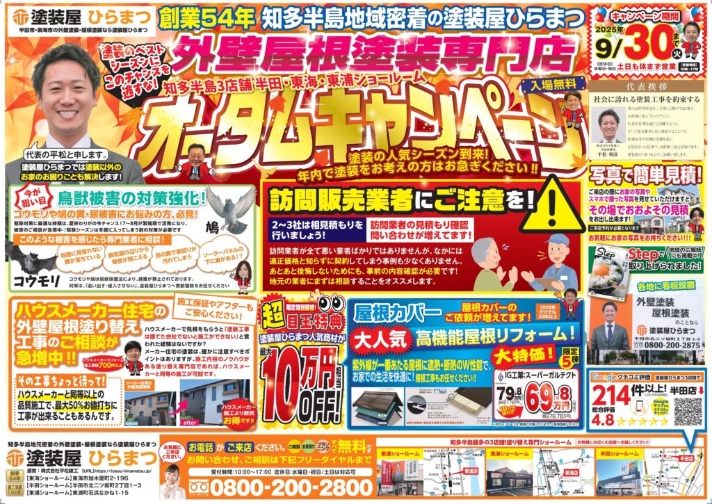 【東海店】【半田店】【東浦店】:オータムキャンペーン|外壁塗装・屋根塗装は塗装屋ひらまつ