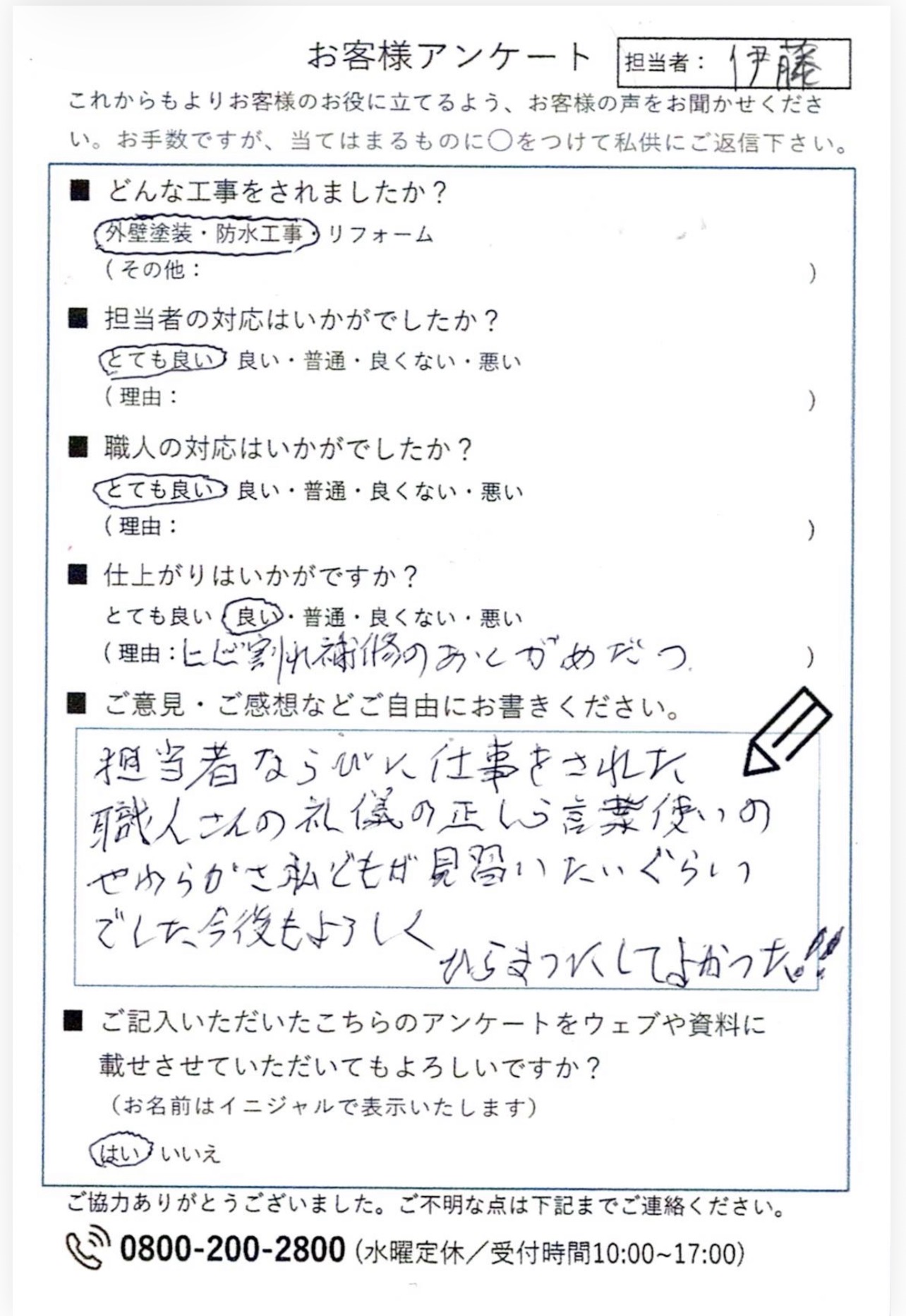 担当者ならびに仕事をされた職人さんの礼儀の正しい言葉使いの