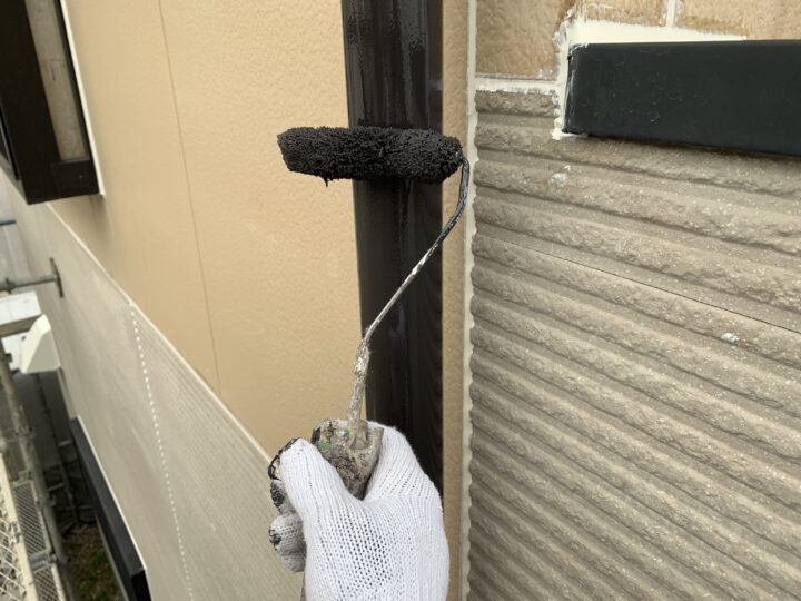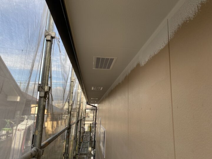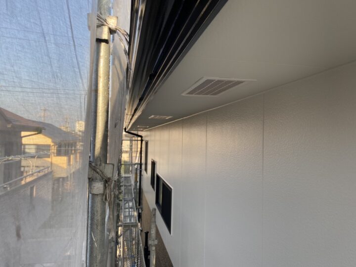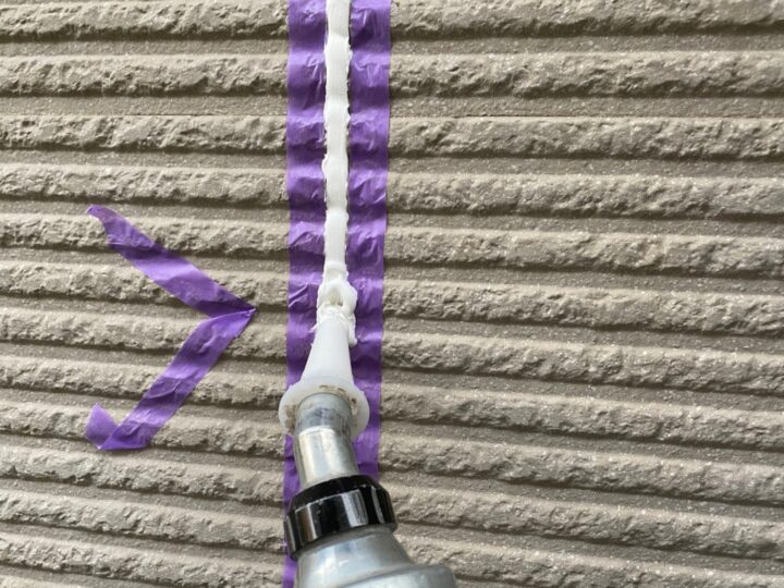 破風板や、雨樋、クーラーホースの色を外壁に合わせて変えました!