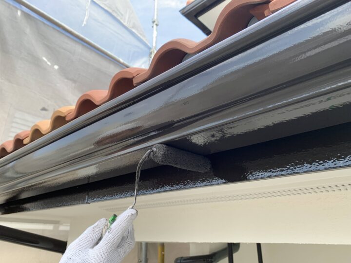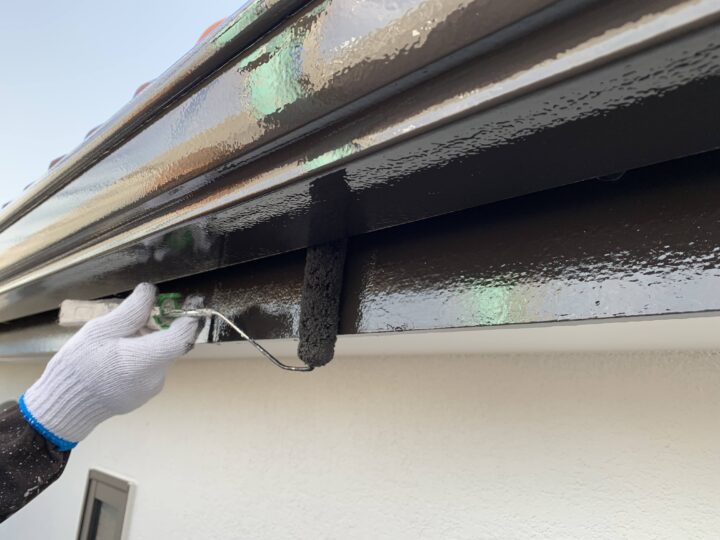 雨樋や破風板、鼻隠し等の付帯部分は濃いブラウンでまとめて、