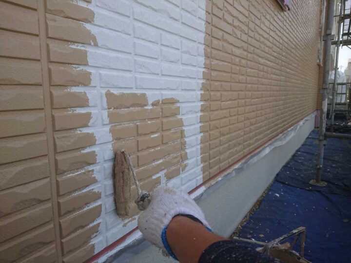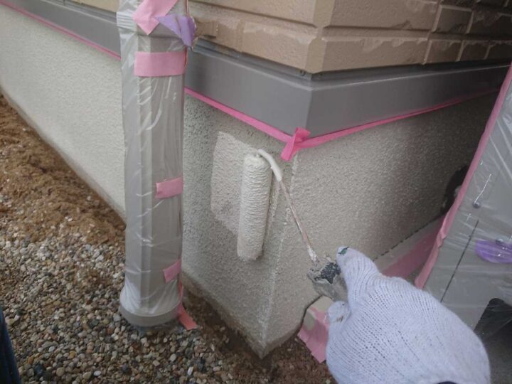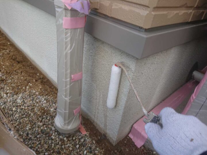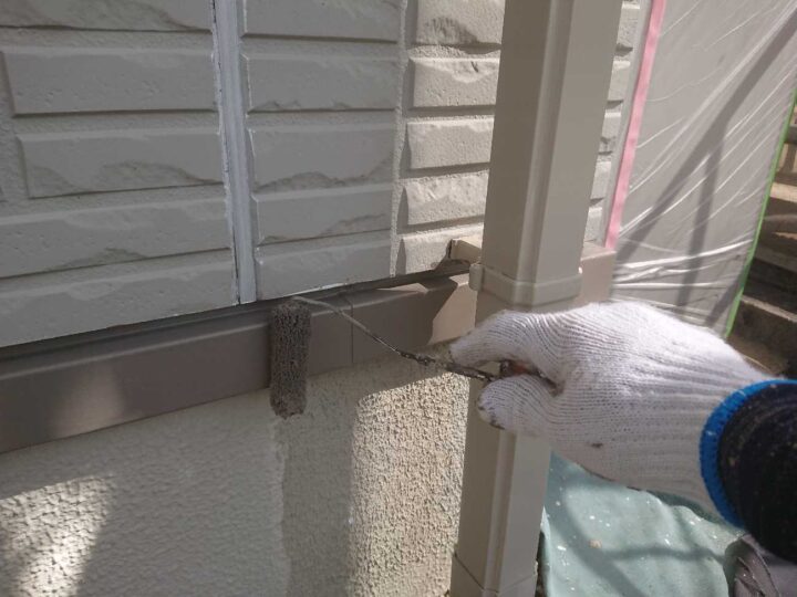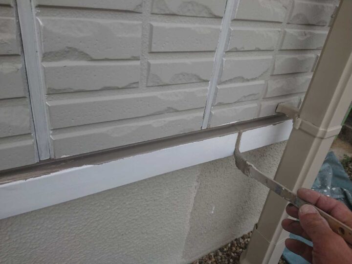 ハウスメーカーは目地にパッキンがはめ込まれています。この部材は塗料との相性が悪いため、専用プライマーが必要になります。
