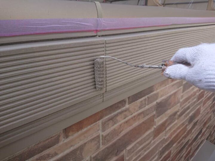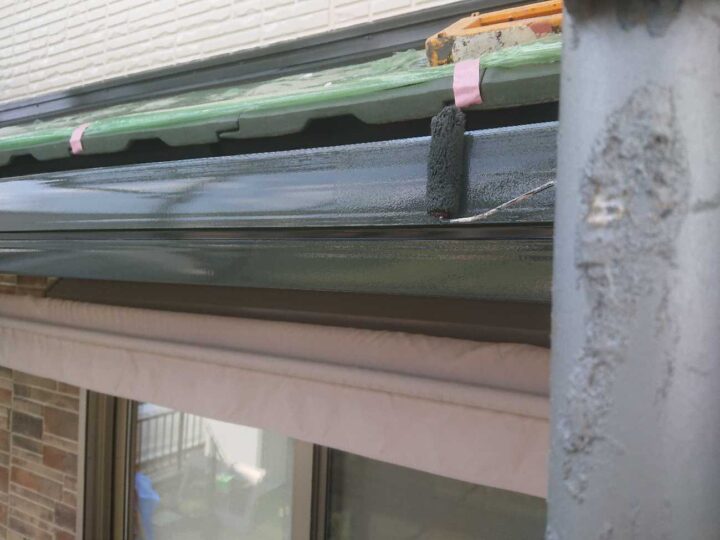 塩ビ(雨樋)や鉄部(雨戸・シャッターボックス・水切り等)は塗装前にケレンを行います。サビ落としや塗料の密着をよくする目的があります。