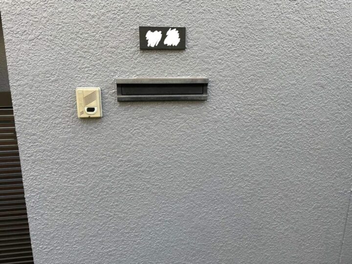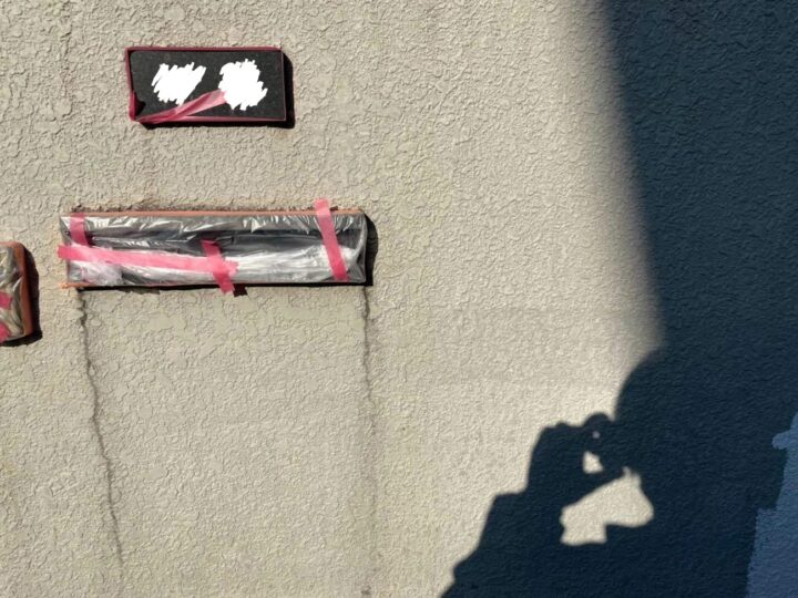 この時外壁にはみ出してしまわぬよう、両サイドに紙テープで養生しています。