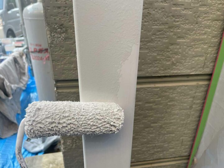 劣化状況を踏まえて、下塗りには塗料の吸い込みを抑えるため造膜タイプを使用しています。