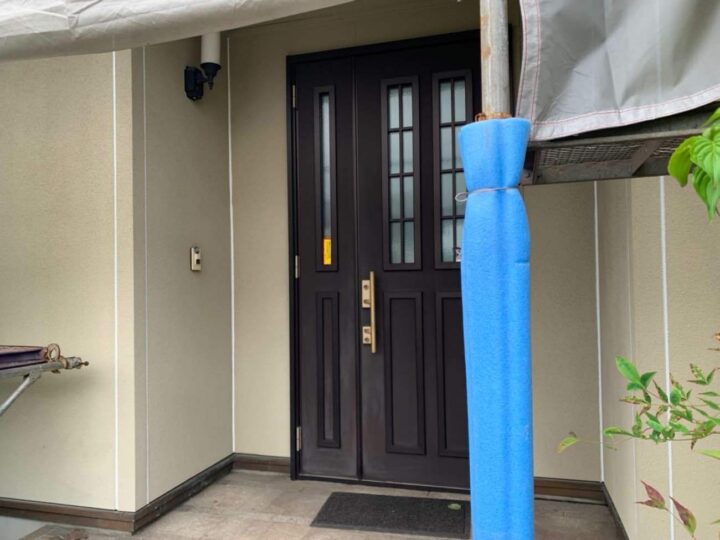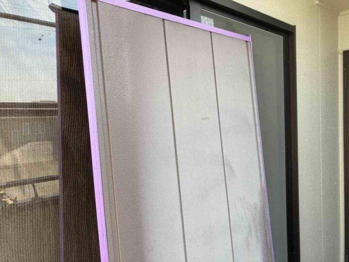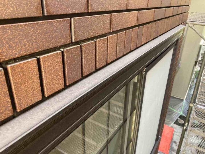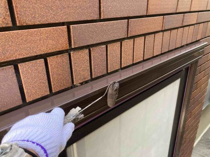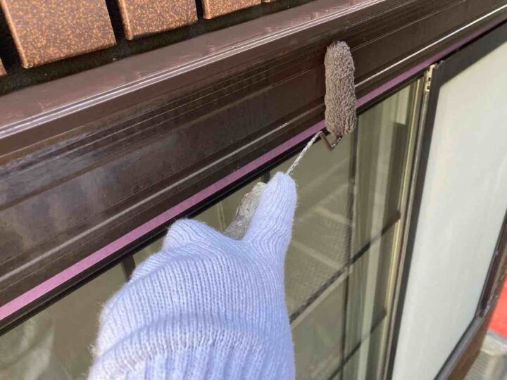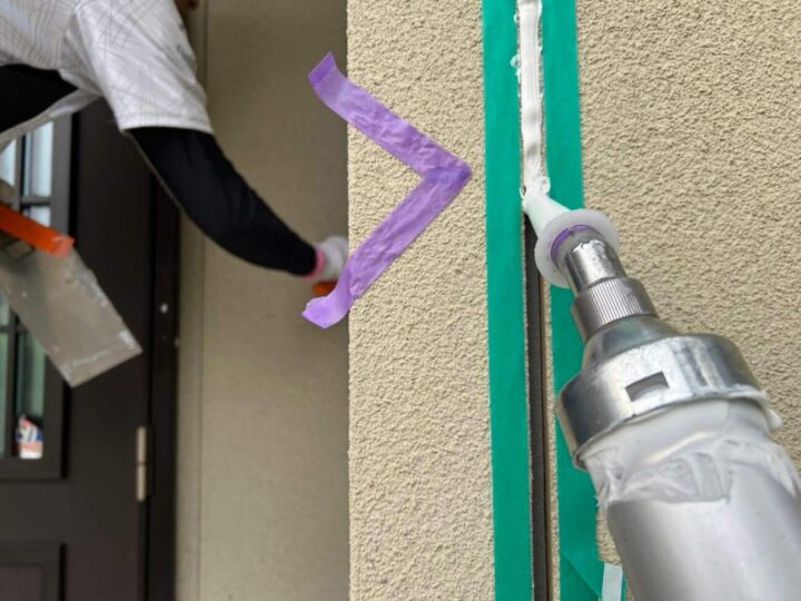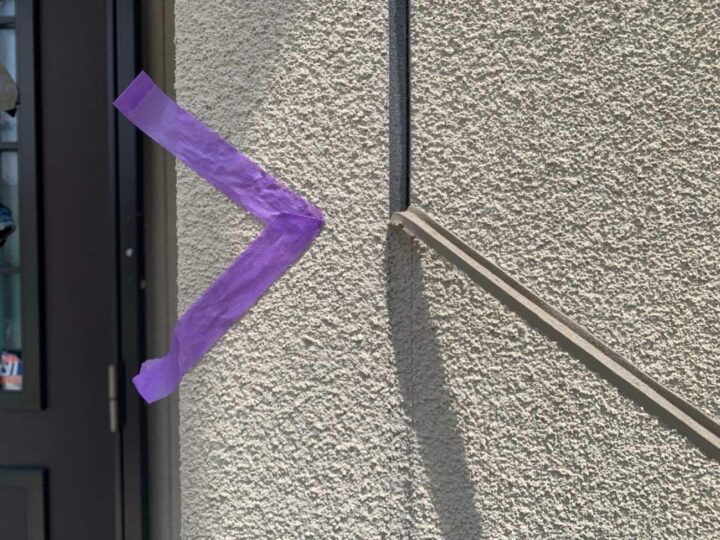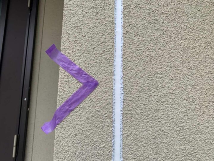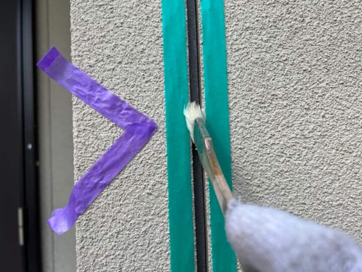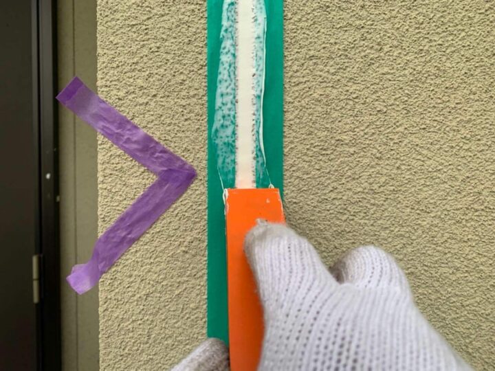 この時外壁にはみ出してしまわぬよう、両サイドに紙テープで養生しています。