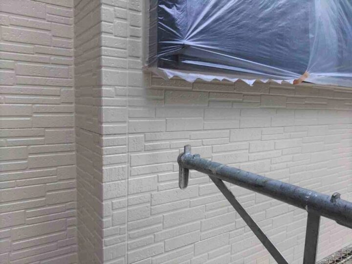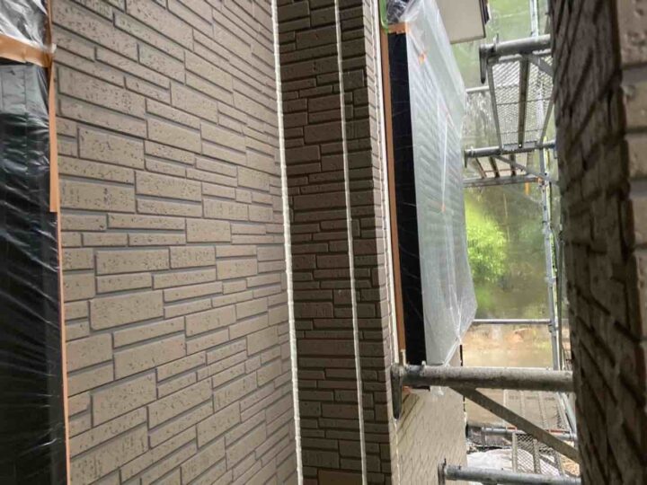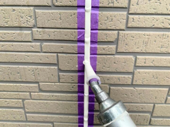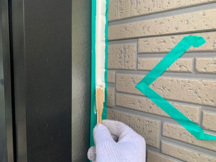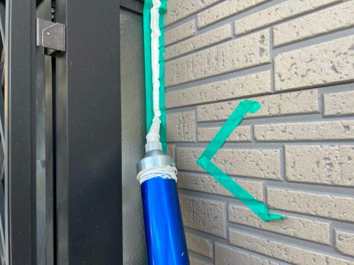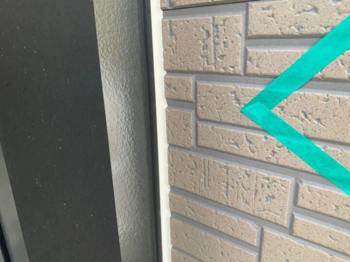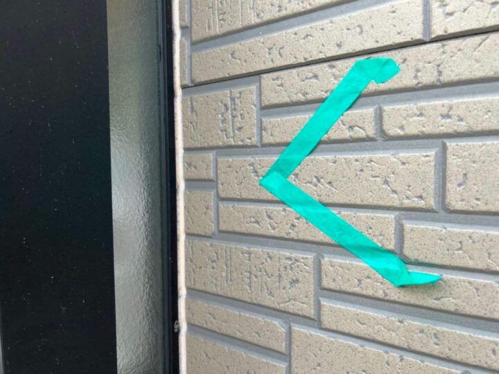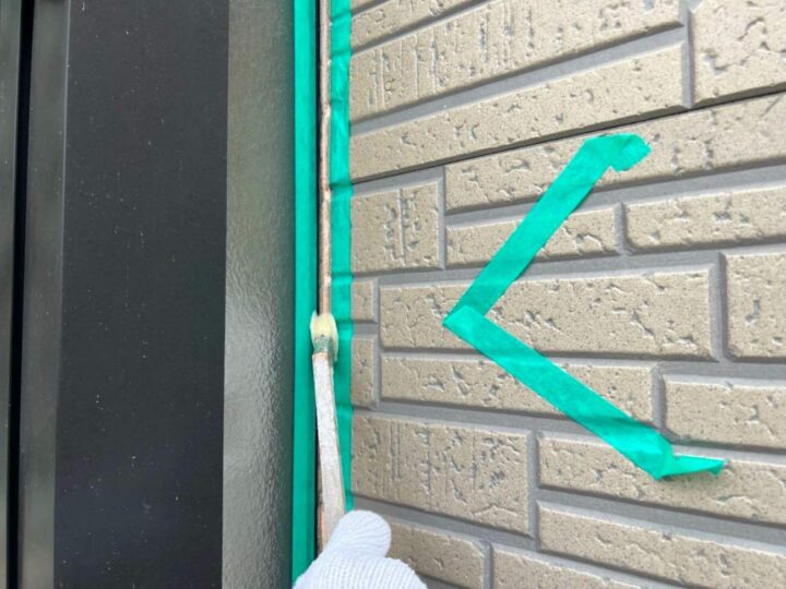 この時外壁にはみ出してしまわぬよう、両サイドに紙テープで養生しています。