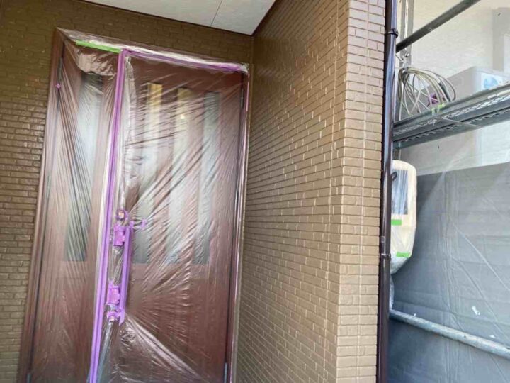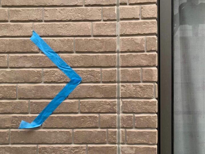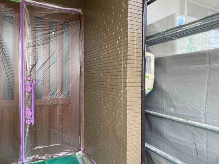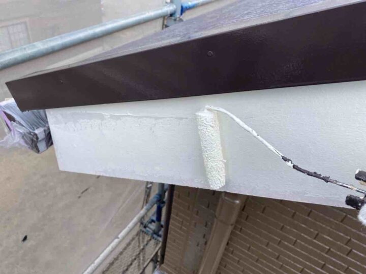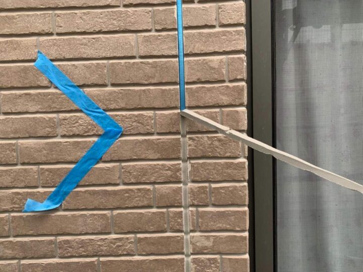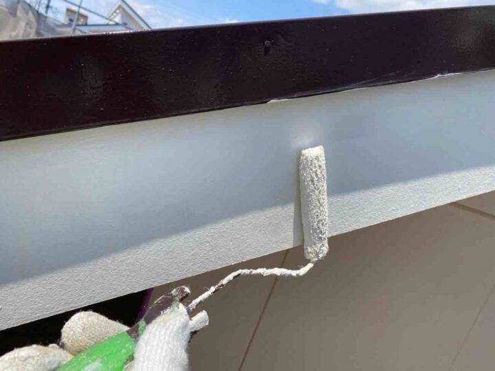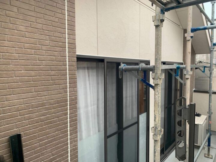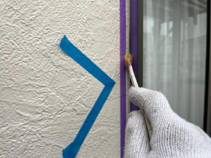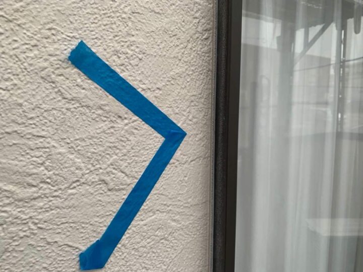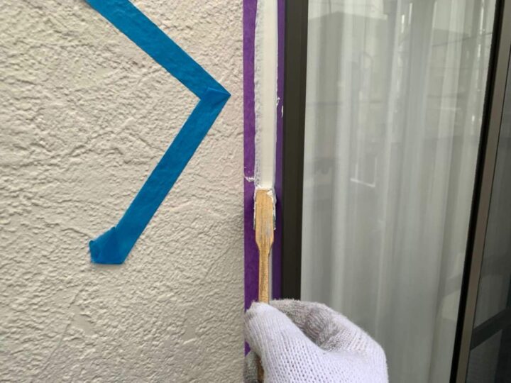 この時外壁にはみ出してしまわぬよう、両サイドに紙テープで養生しています。