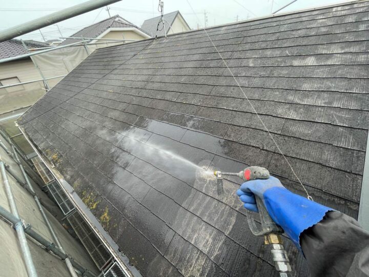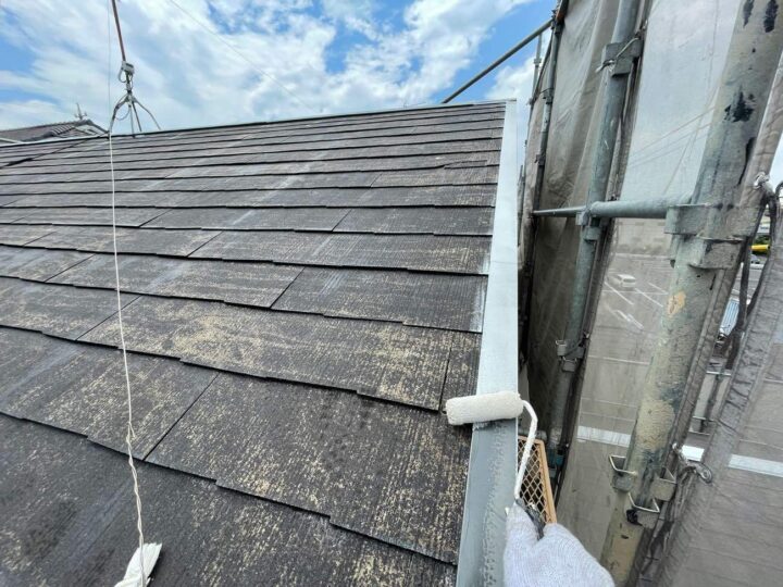 屋根材の種類や下地の状態に応じて、適切な下塗り材を使用します。下塗りは、下地と塗料の密着度を高める役割と下地を整える効果があります。