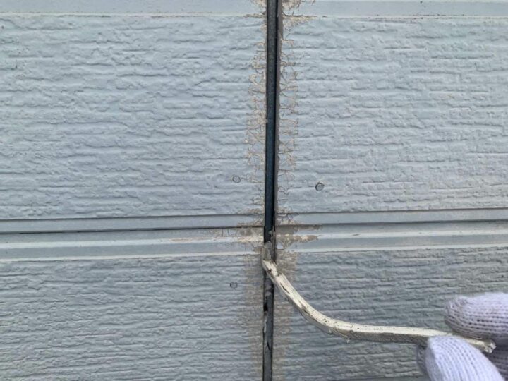 外壁と外壁の間にあるゴムのようなパテの部分の補修作業です。