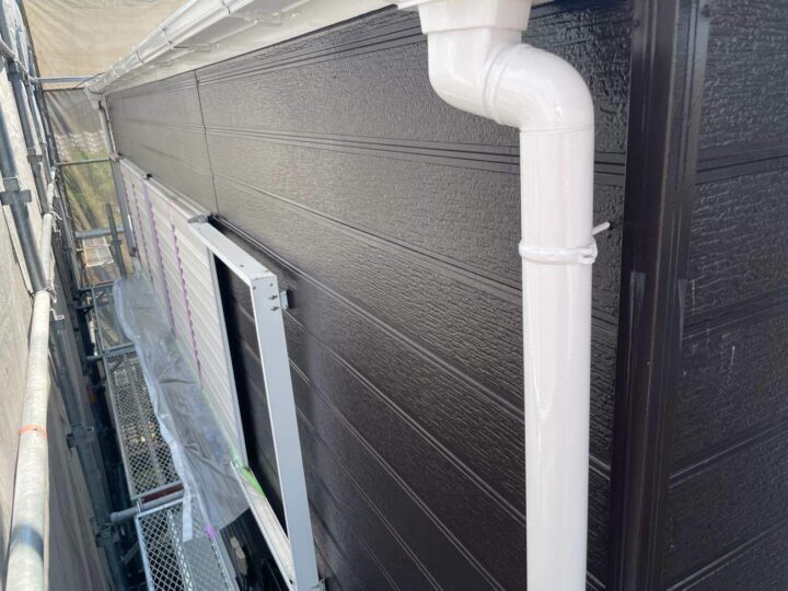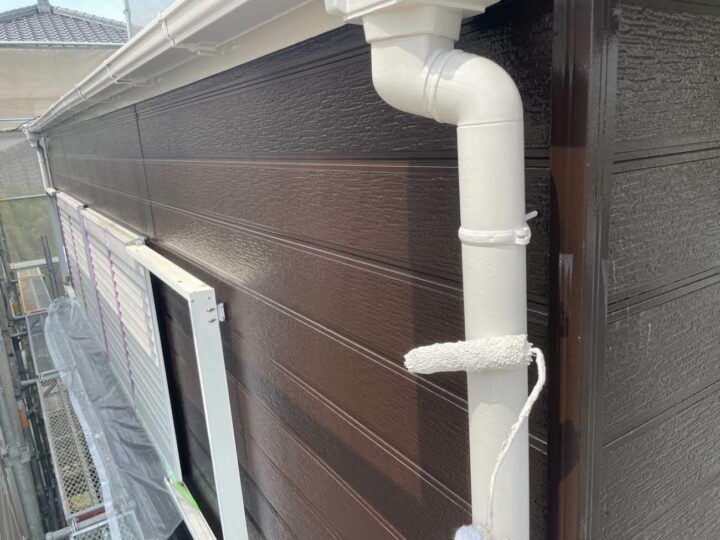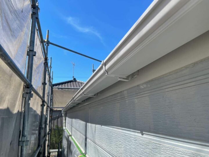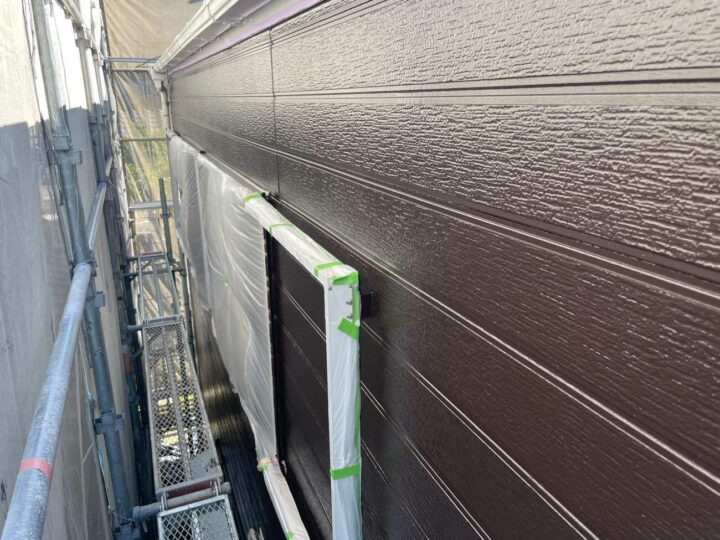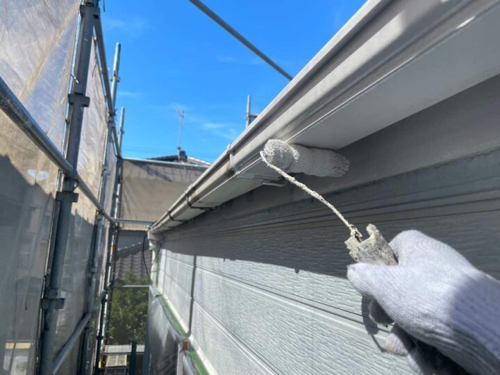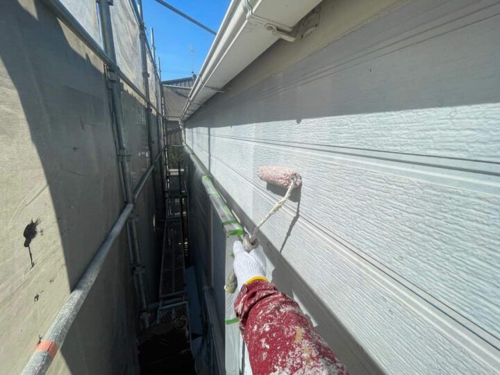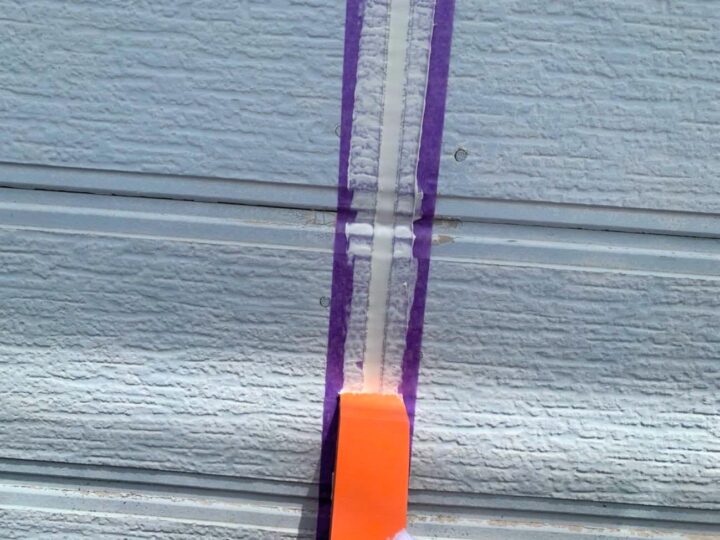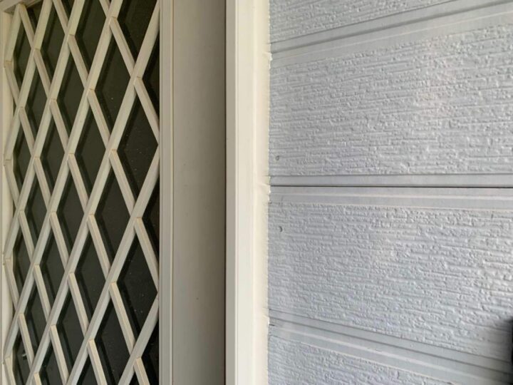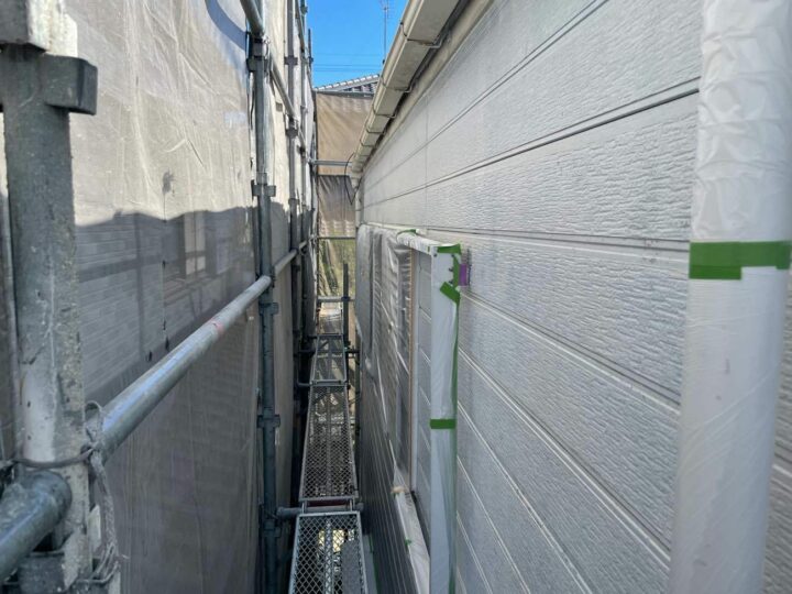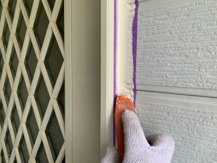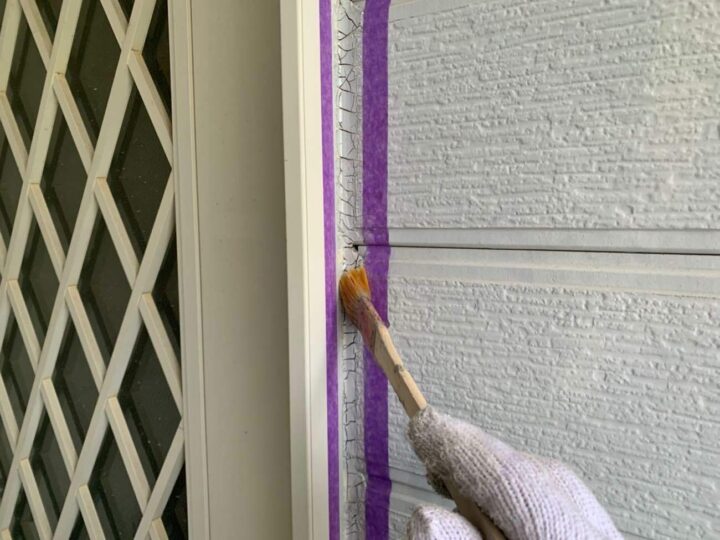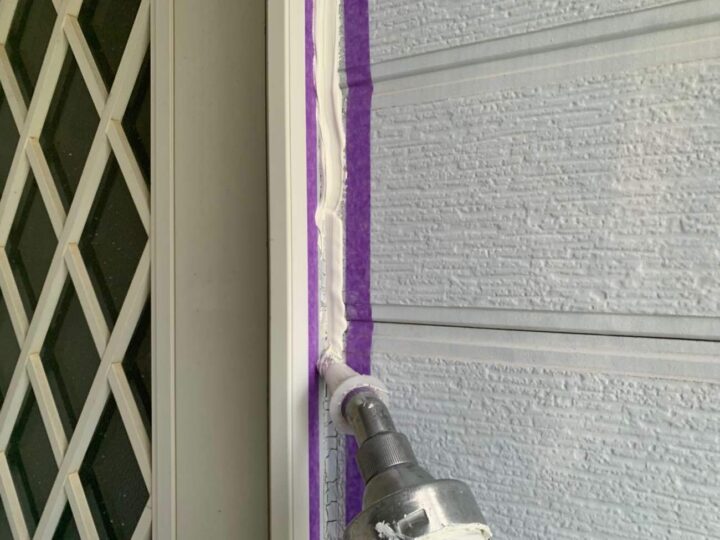 この時外壁にはみ出してしまわぬよう、両サイドに紙テープで養生しています。