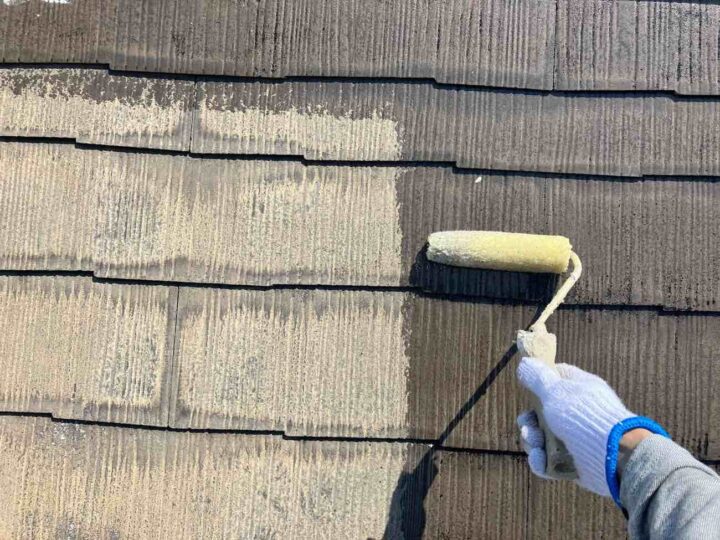 屋根材の種類や下地の状態に応じて、適切な下塗り材を使用します。下塗りは、下地と塗料の密着度を高める役割と下地を整える効果があります。