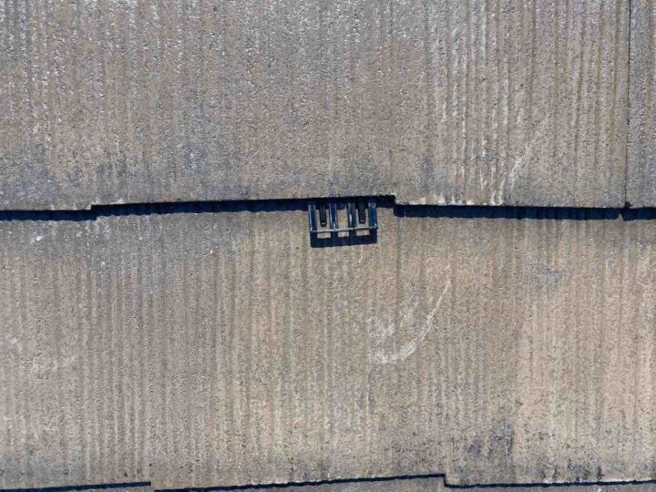 縁切り作業は、屋根材の重なっている部分を塗膜でふさいでしまうのを防ぐ作業です。専用の部材(タスペーサー)を挟み隙間を開けます。