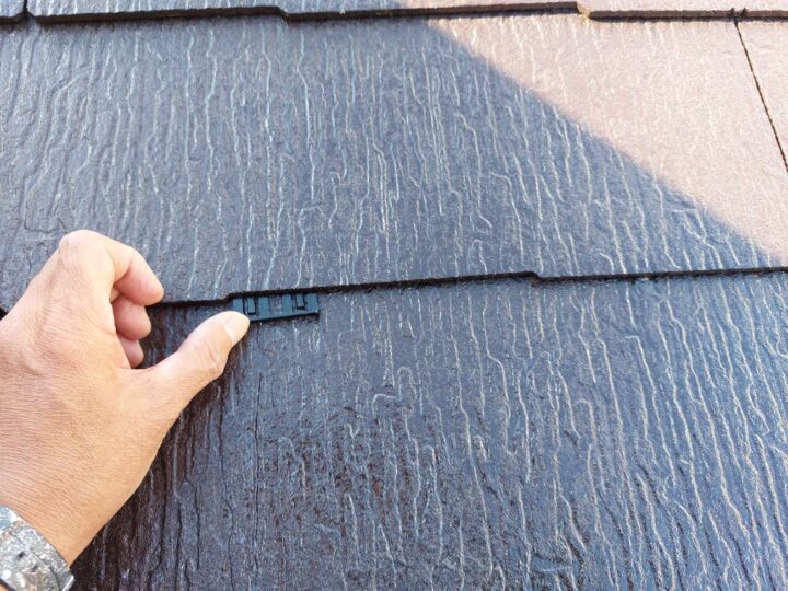 縁切り作業は、屋根材の重なっている部分を塗膜でふさいでしまうのを防ぐ作業です。専用の部材(タスペーサー)を挟み隙間を開けます。