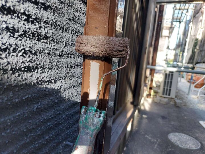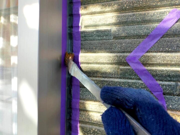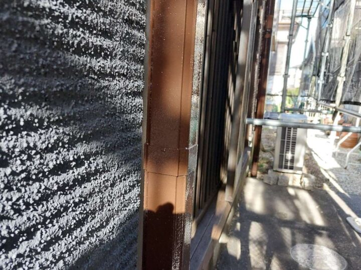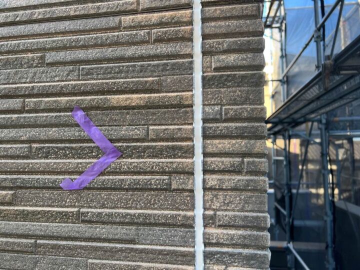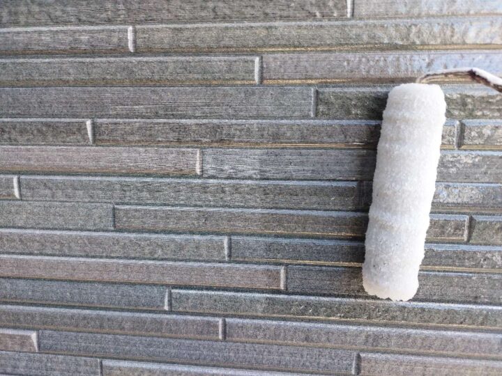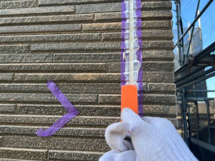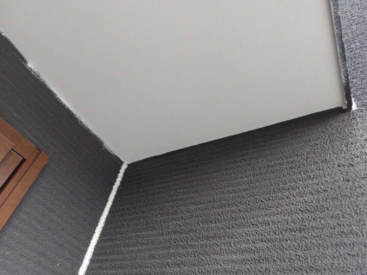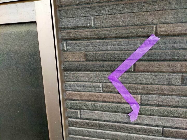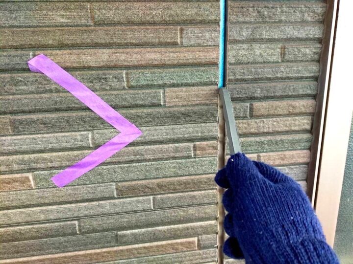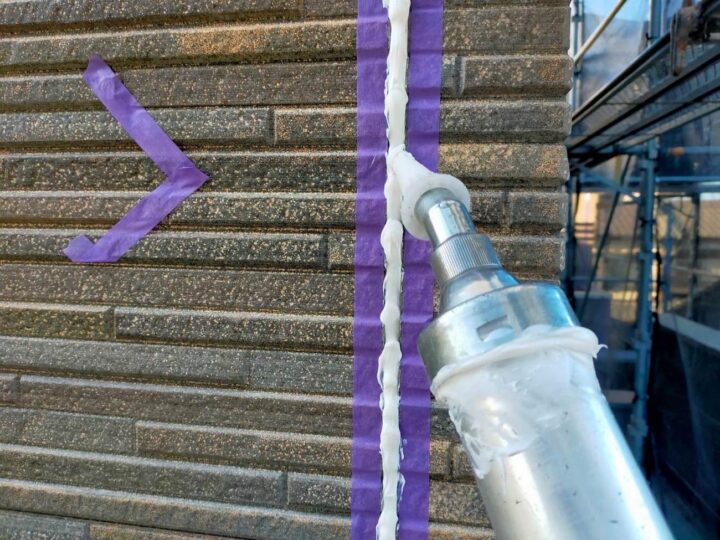 この時外壁にはみ出してしまわぬよう、両サイドに紙テープで養生しています。