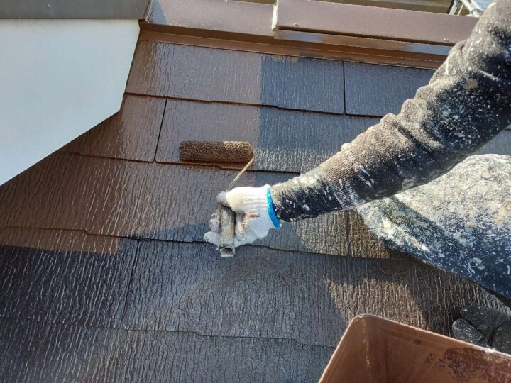屋根材の種類や下地の状態に応じて、適切な下塗り材を使用します。下塗りは、下地と塗料の密着度を高める役割と下地を整える効果があります。
