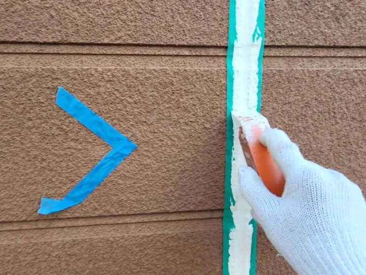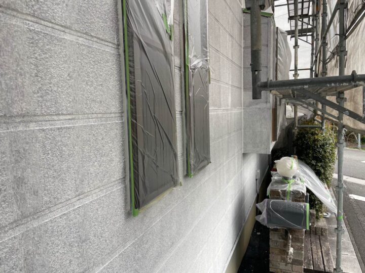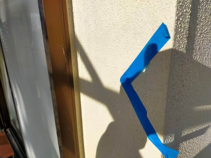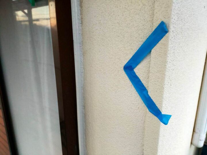 この時外壁にはみ出してしまわぬよう、両サイドに紙テープで養生しています。