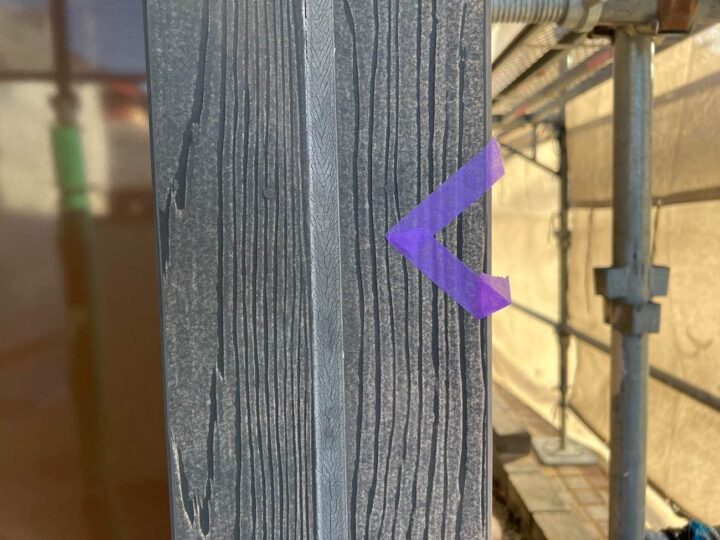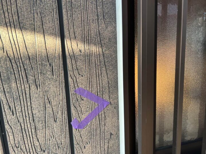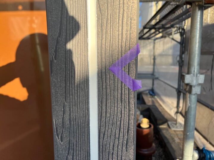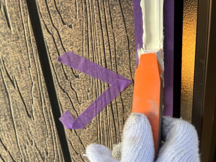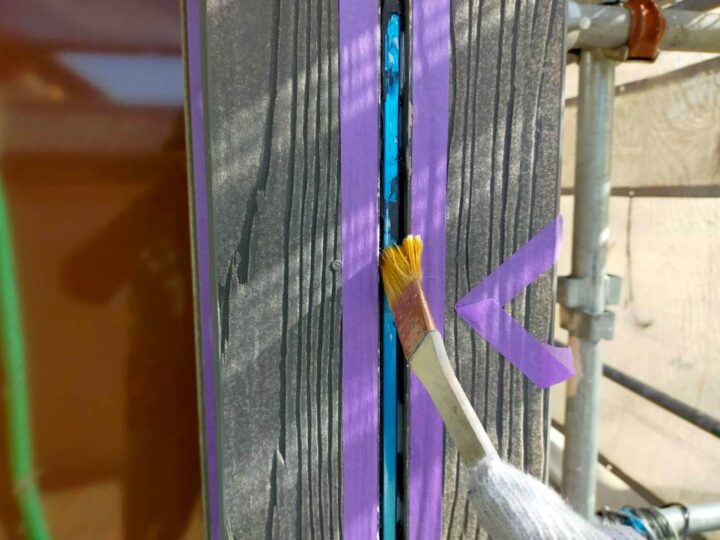 この時外壁にはみ出してしまわぬよう、両サイドに紙テープで養生しています。