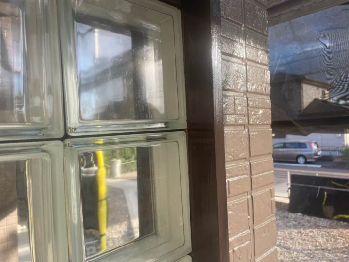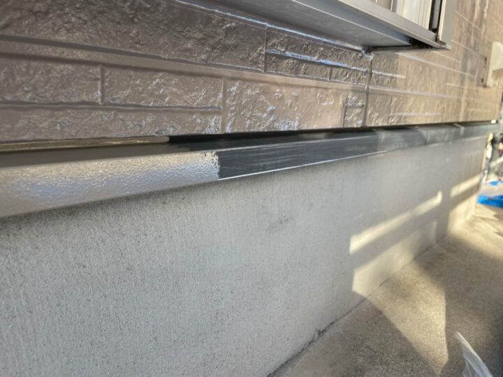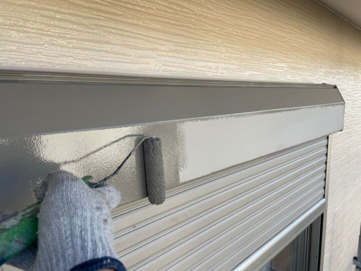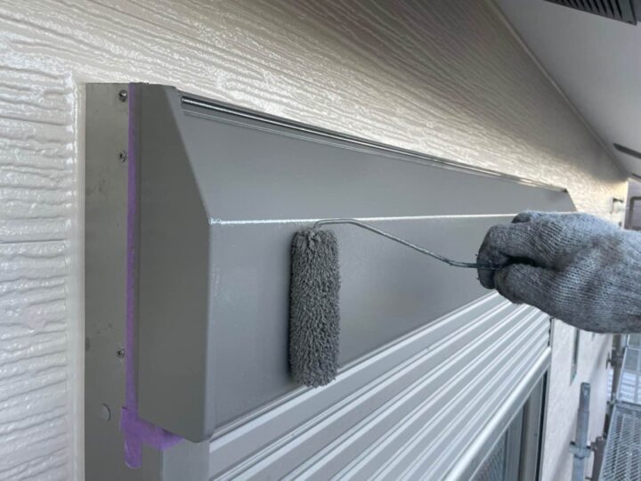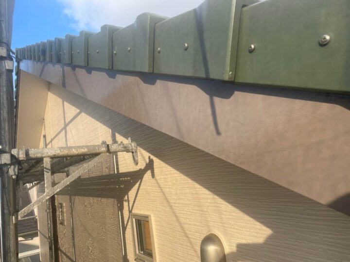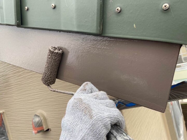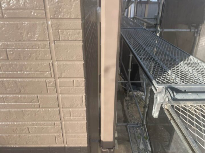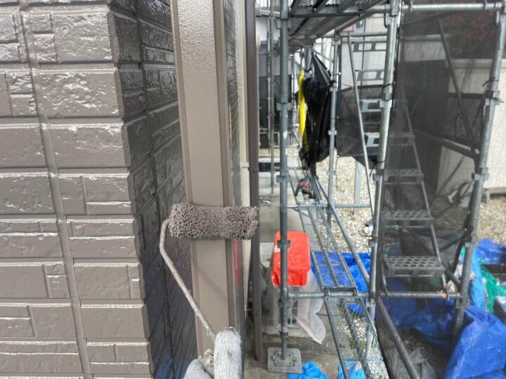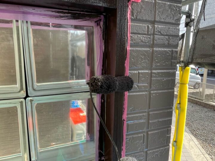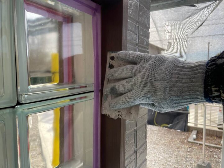 この時外壁にはみ出してしまわぬよう、両サイドに紙テープで養生しています。