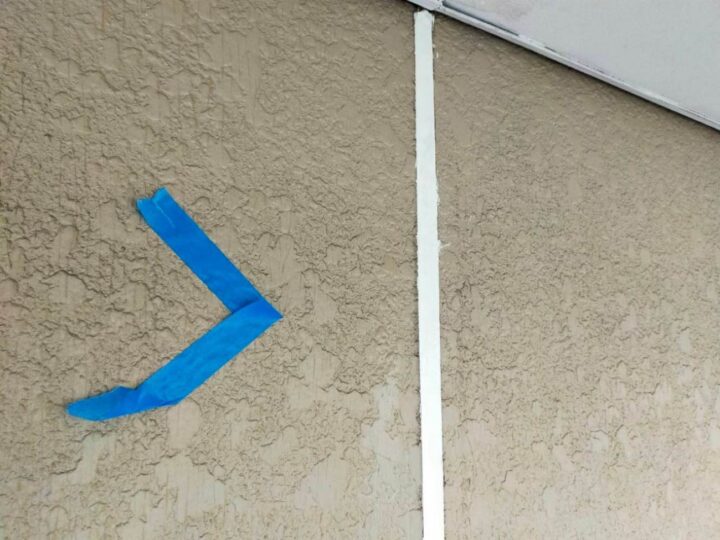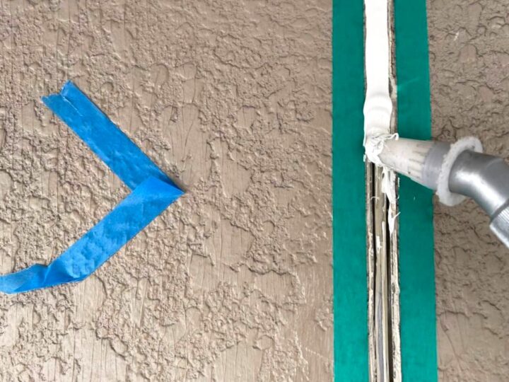 この時外壁にはみ出してしまわぬよう、両サイドに紙テープで養生しています。
