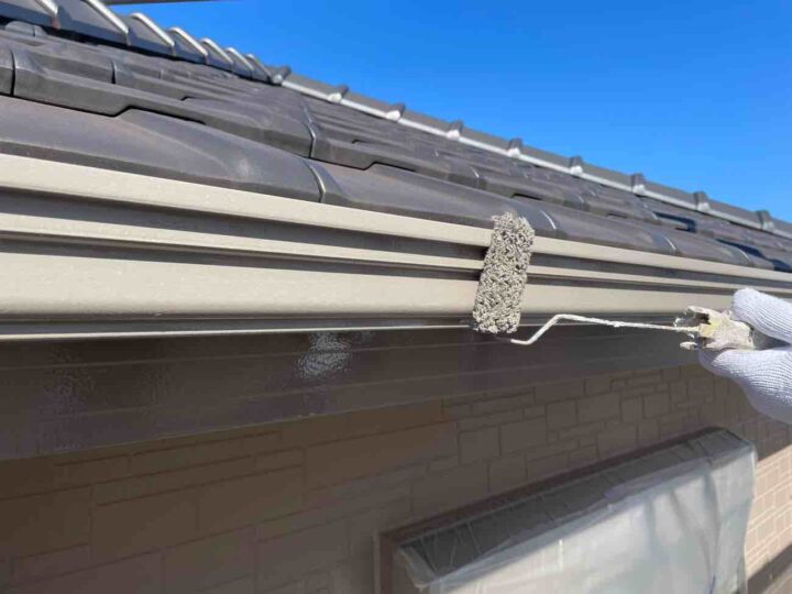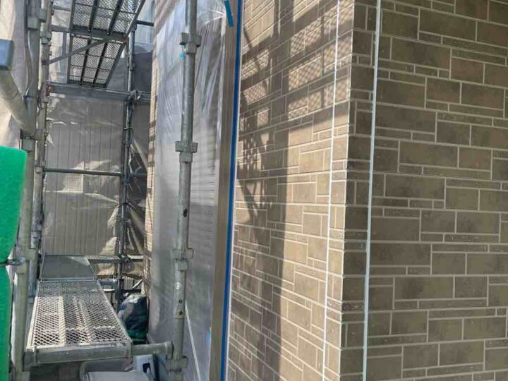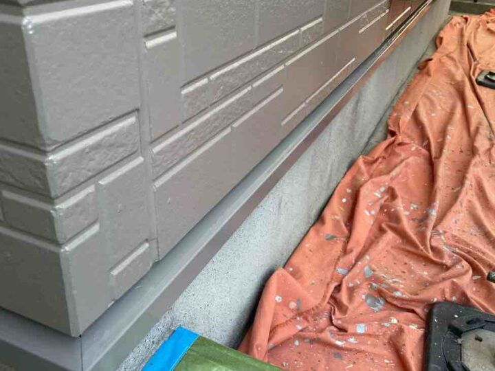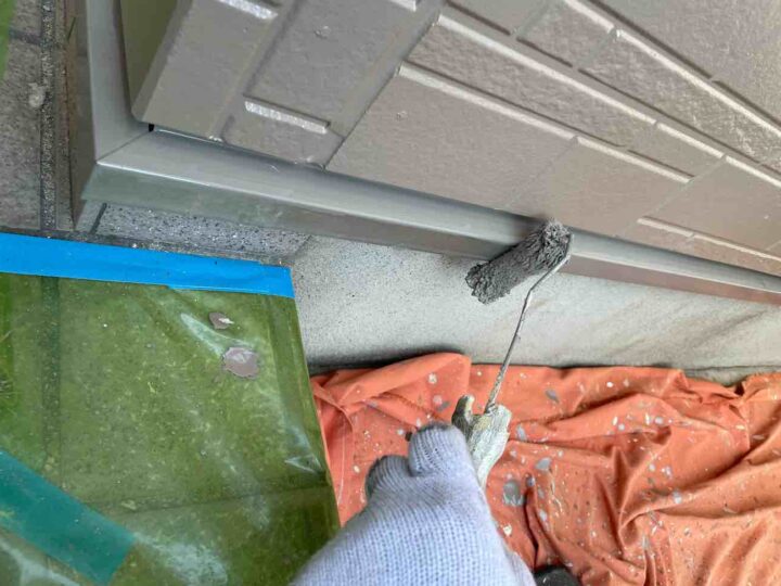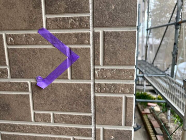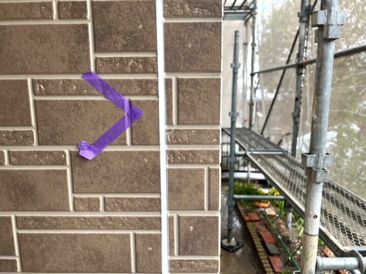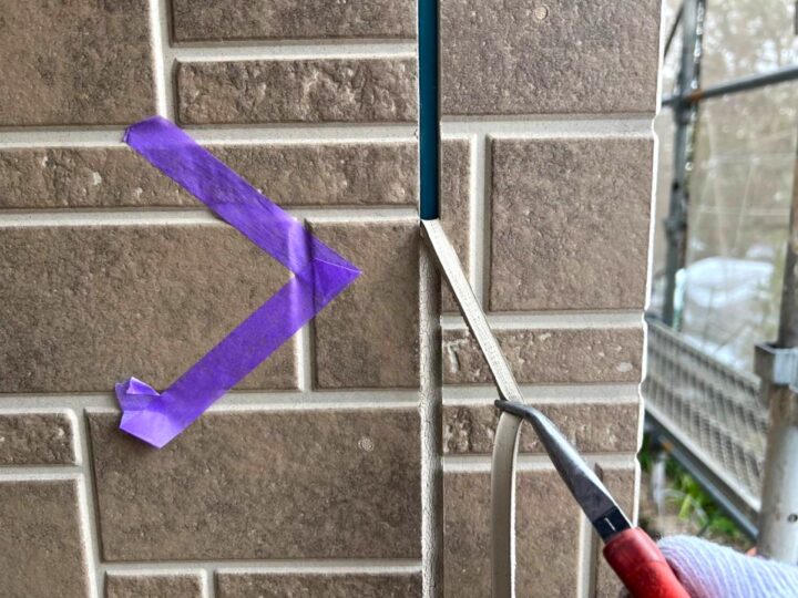 この時外壁にはみ出してしまわぬよう、両サイドに紙テープで養生しています。