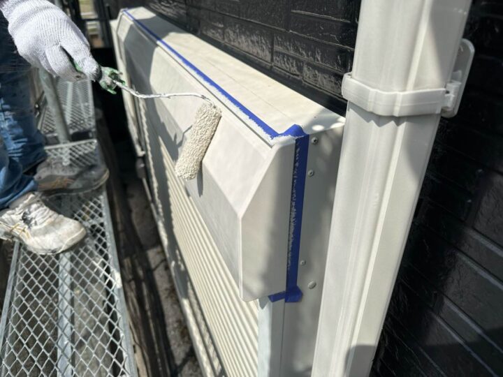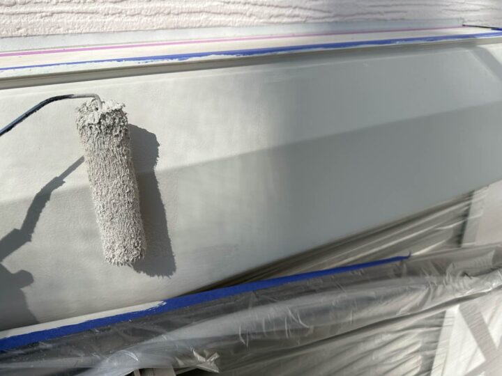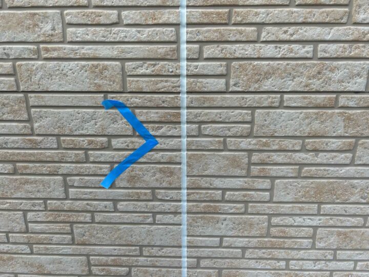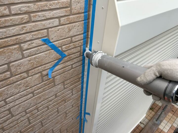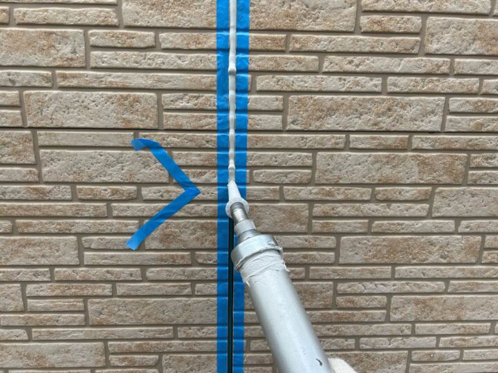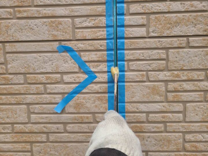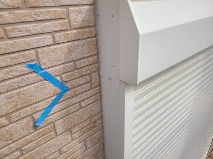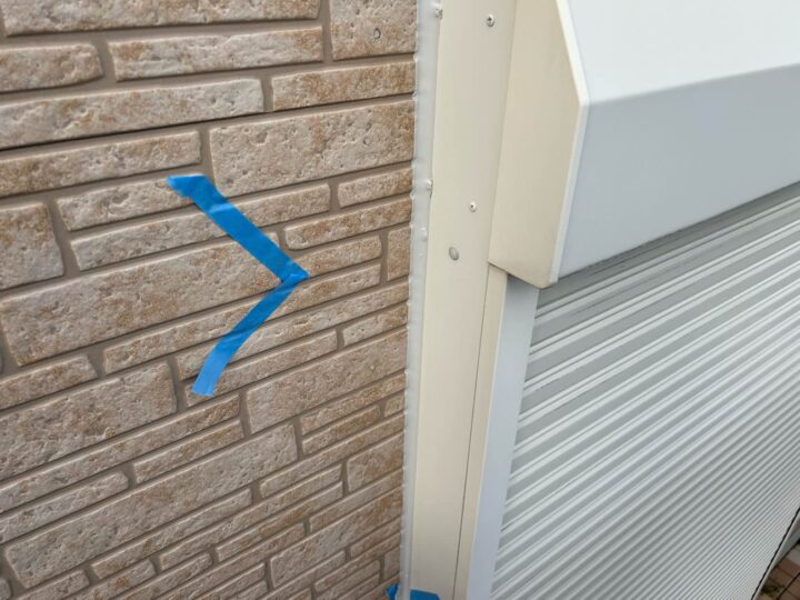 この時外壁にはみ出してしまわぬよう、両サイドに紙テープで養生しています。