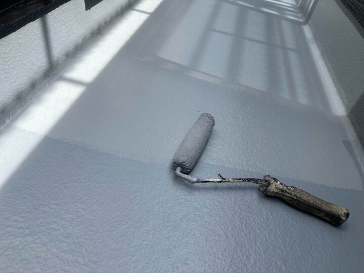 屋根材の種類や下地の状態に応じて、適切な下塗り材を使用します。下塗りは、下地と塗料の密着度を高める役割と下地を整える効果があります。