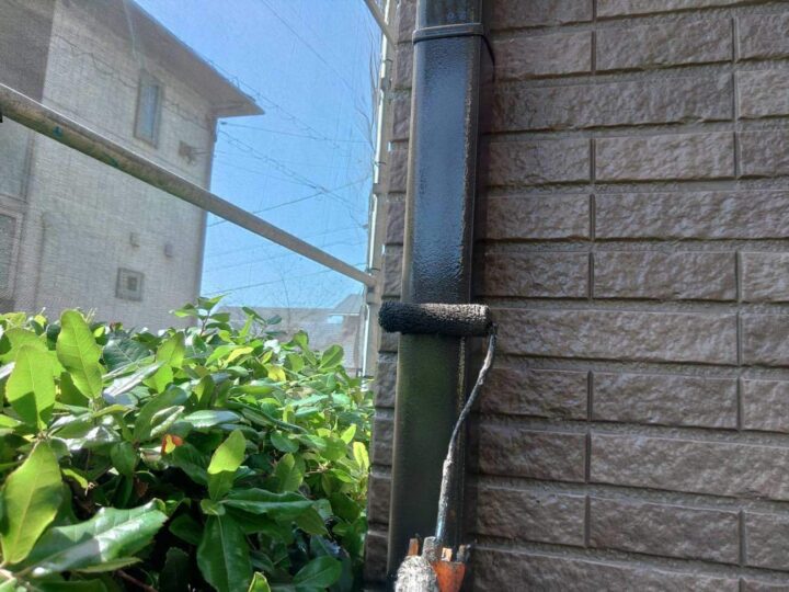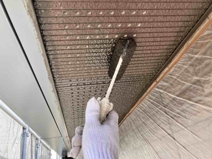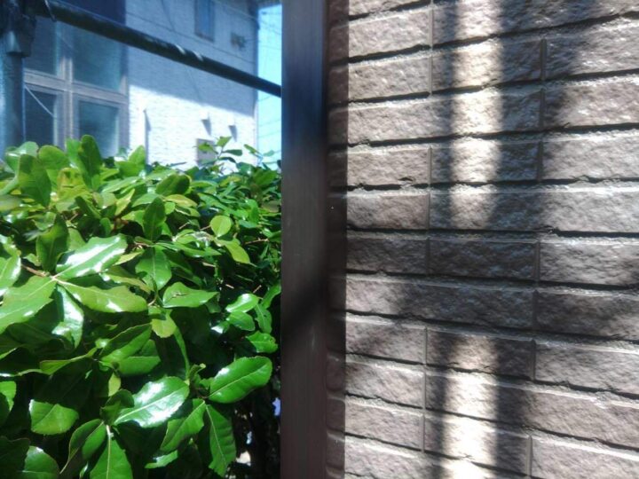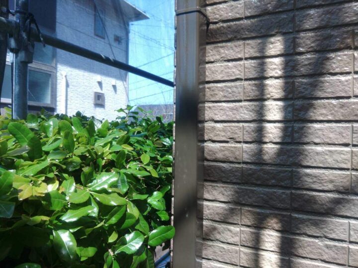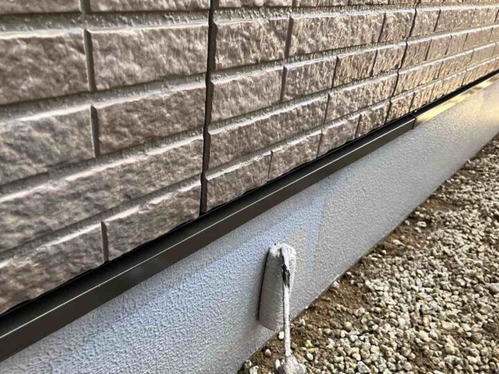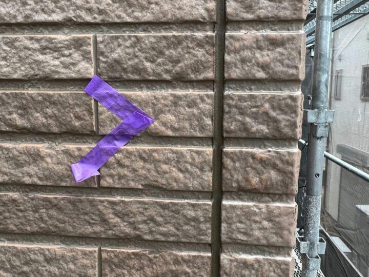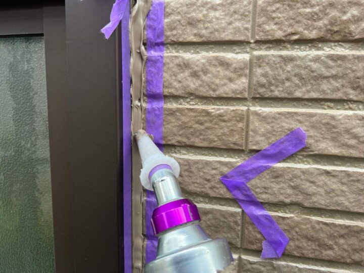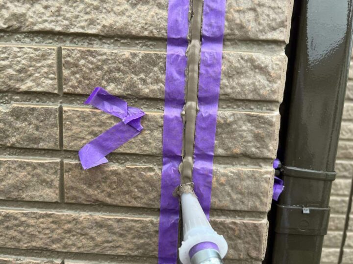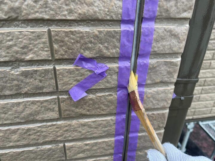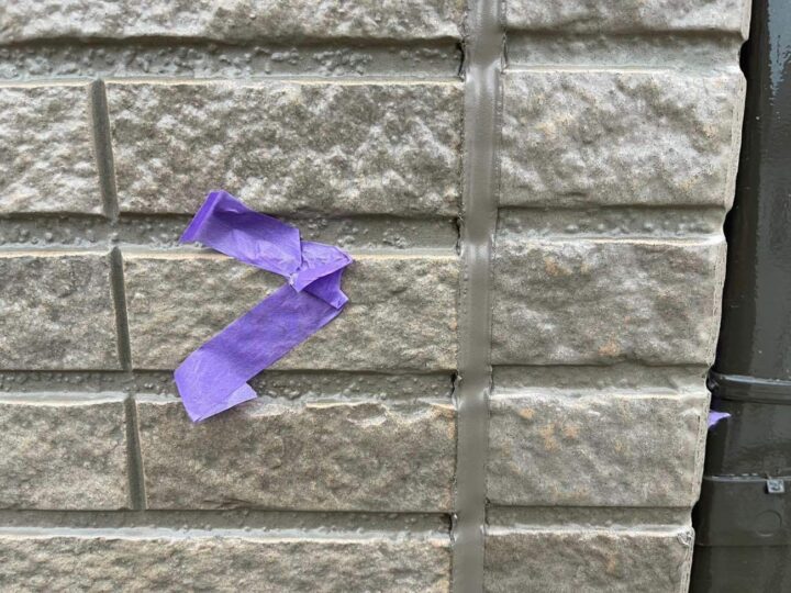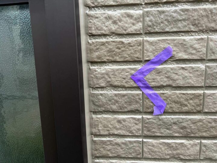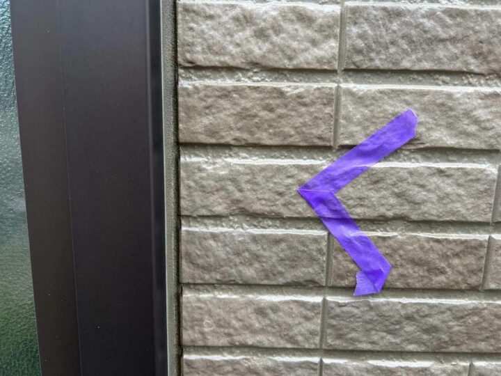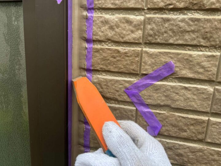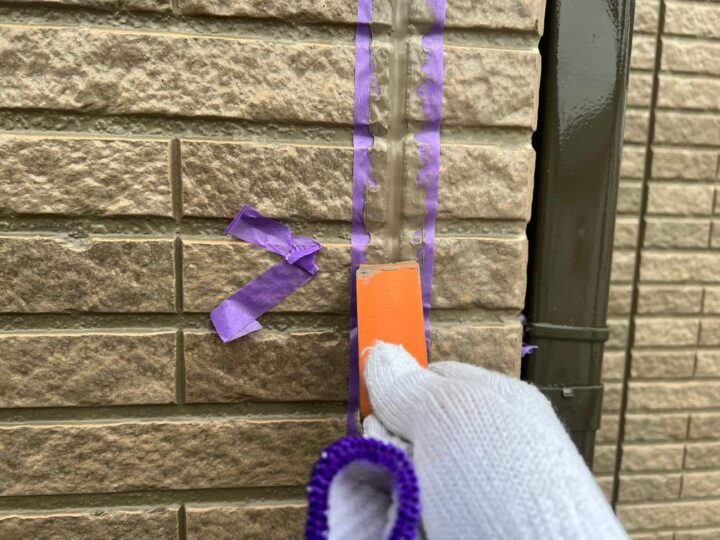 この時外壁にはみ出してしまわぬよう、両サイドに紙テープで養生しています。
