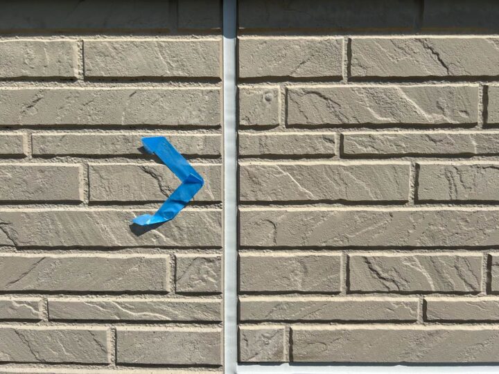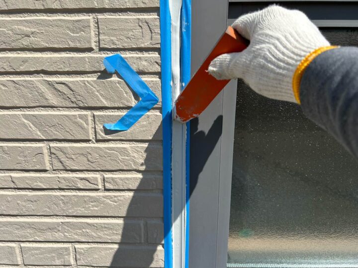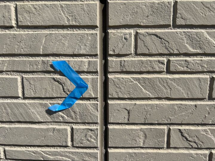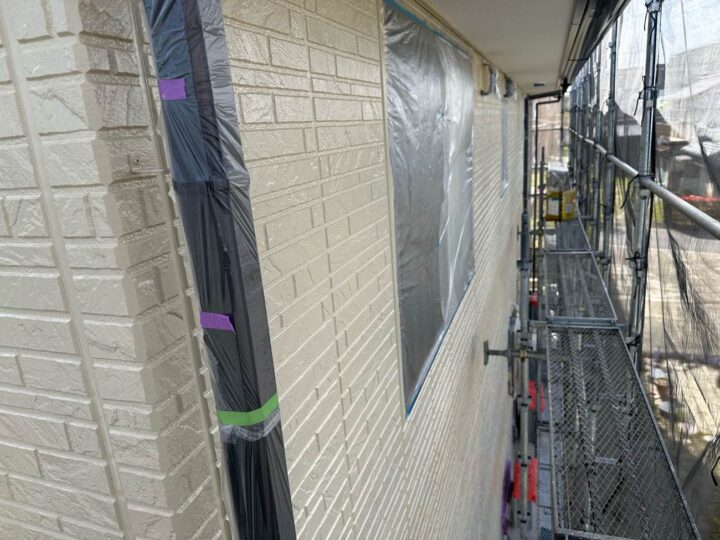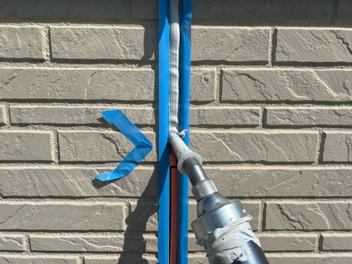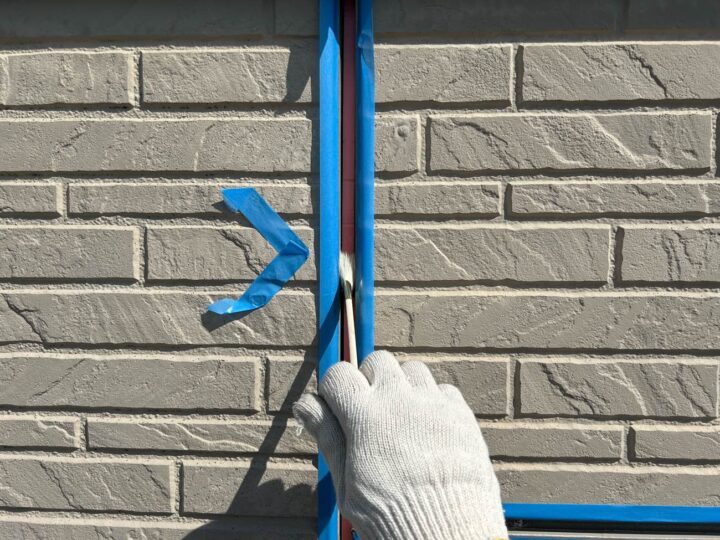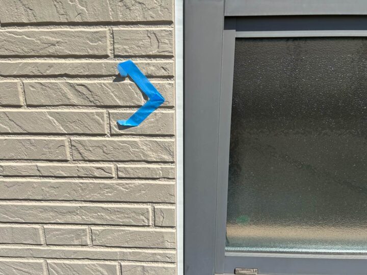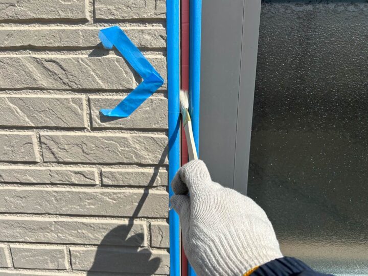 この時外壁にはみ出してしまわぬよう、両サイドに紙テープで養生しています。