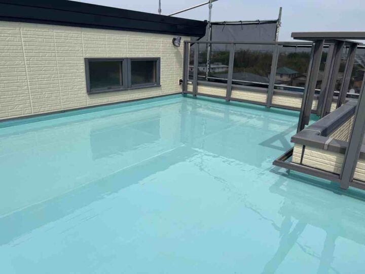 トップコートを塗ることで、紫外線による劣化を防ぎます。施工完了となります。