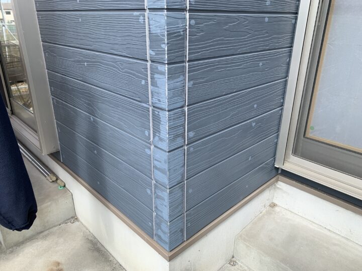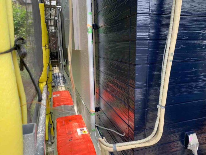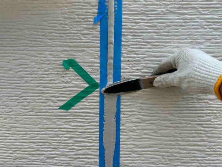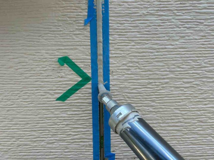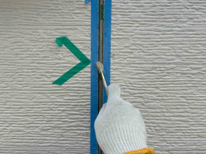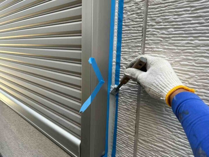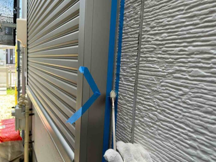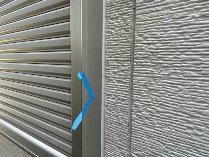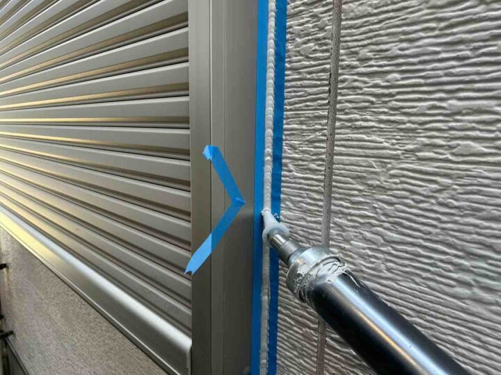 この時外壁にはみ出してしまわぬよう、両サイドに紙テープで養生しています。