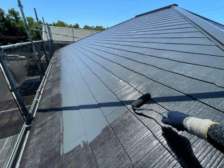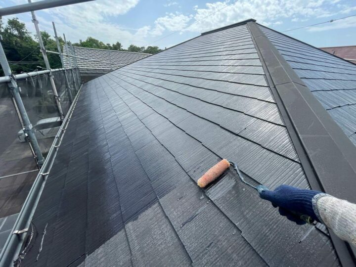 屋根材の種類や下地の状態に応じて、適切な下塗り材を使用します。下塗りは、下地と塗料の密着度を高める役割と下地を整える効果があります。