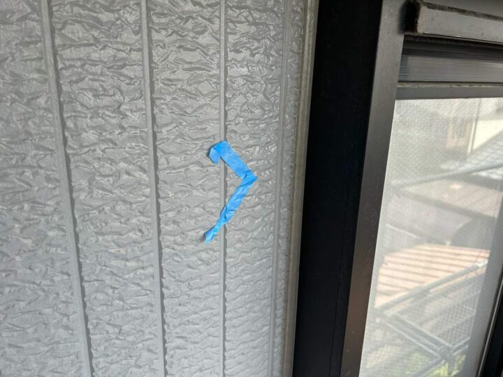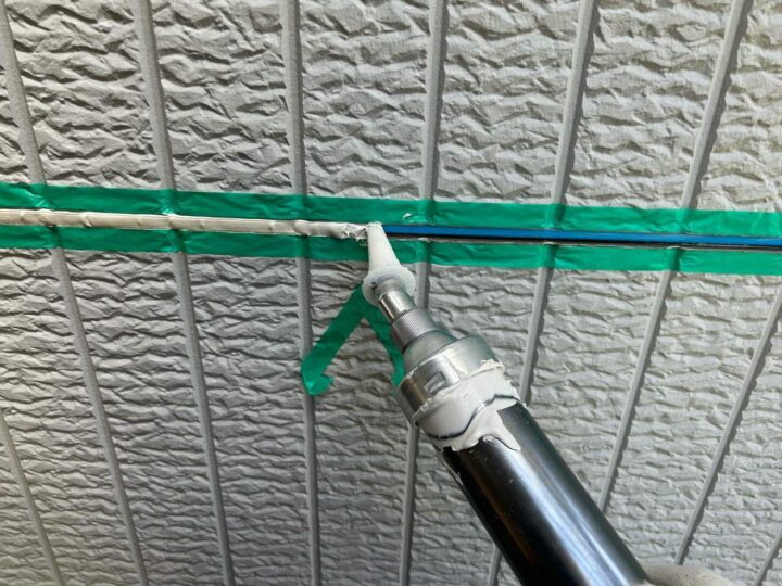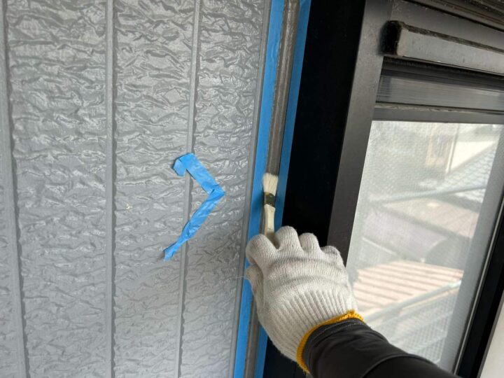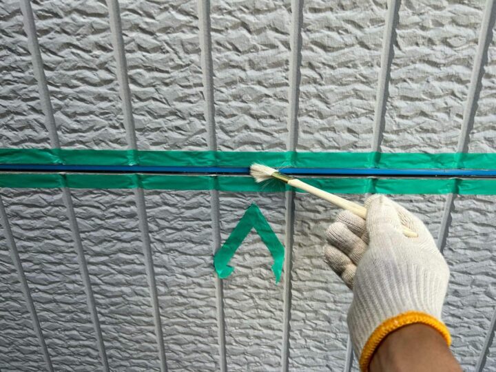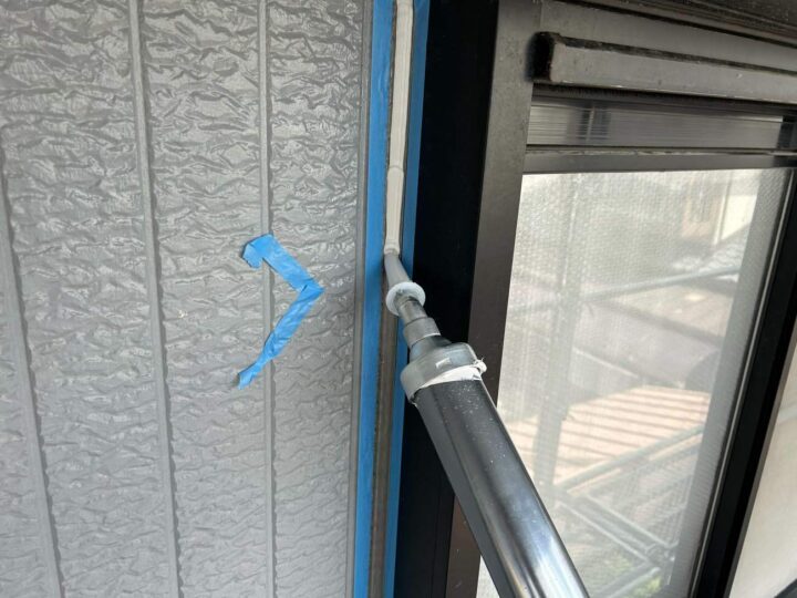 この時外壁にはみ出してしまわぬよう、両サイドに紙テープで養生しています。