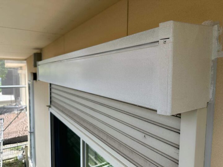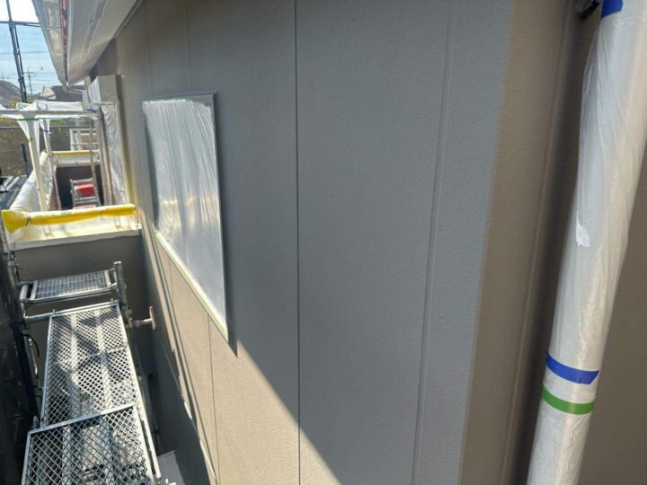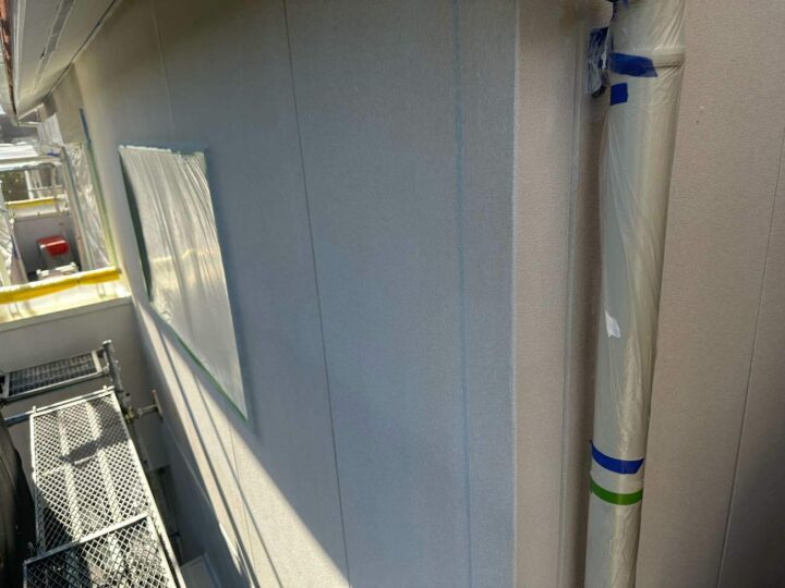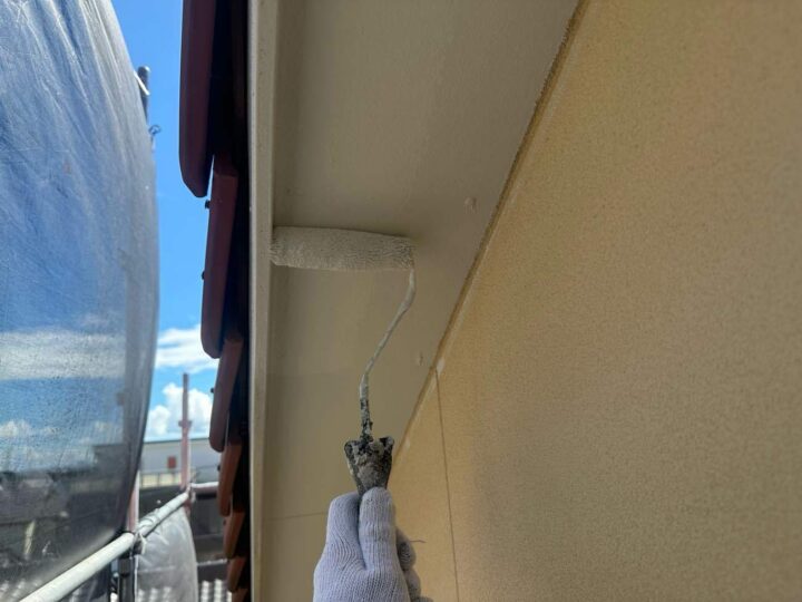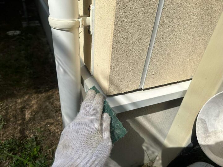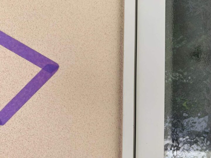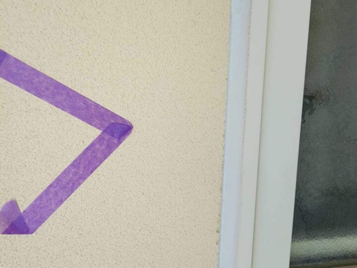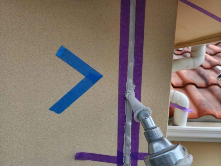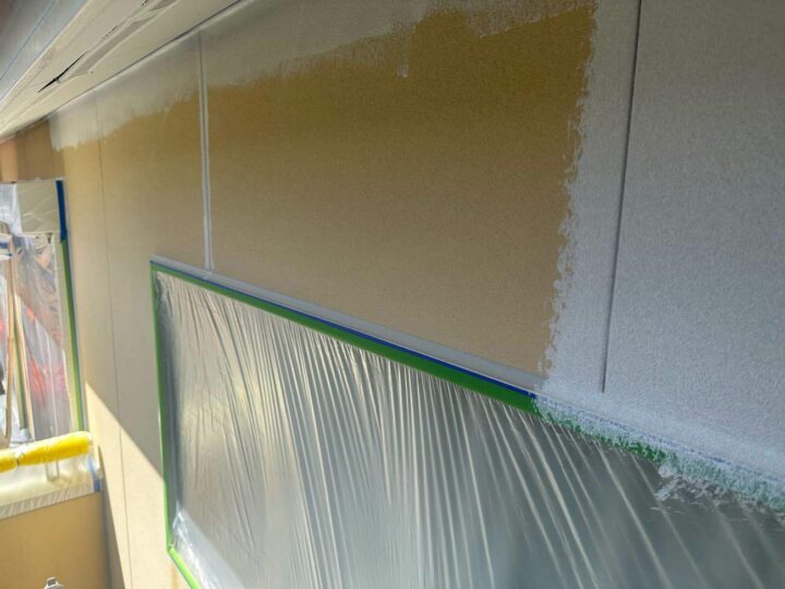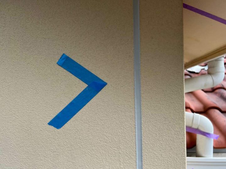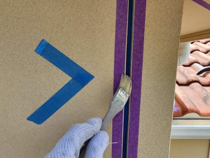 この時外壁にはみ出してしまわぬよう、両サイドに紙テープで養生しています。