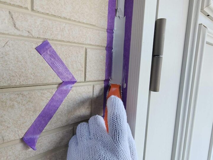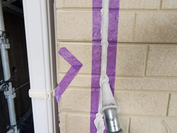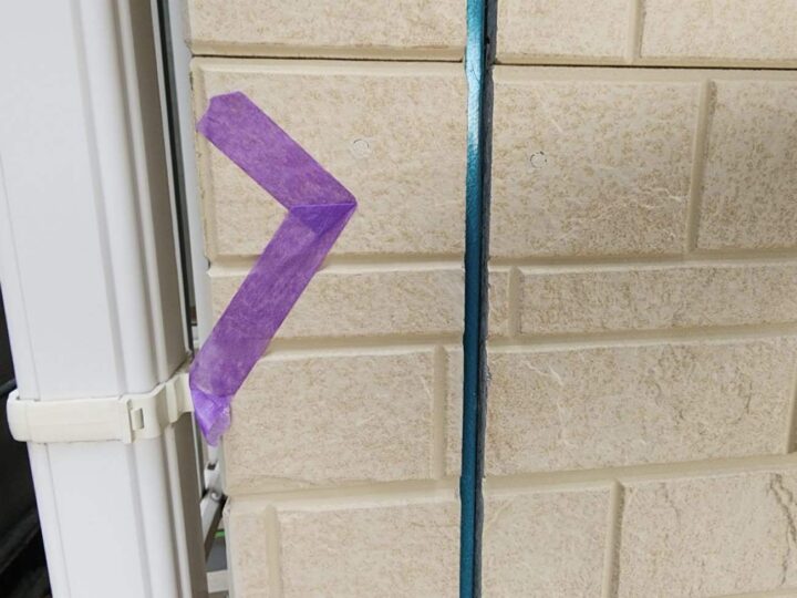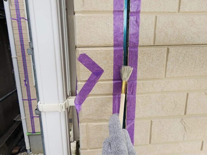 この時外壁にはみ出してしまわぬよう、両サイドに紙テープで養生しています。